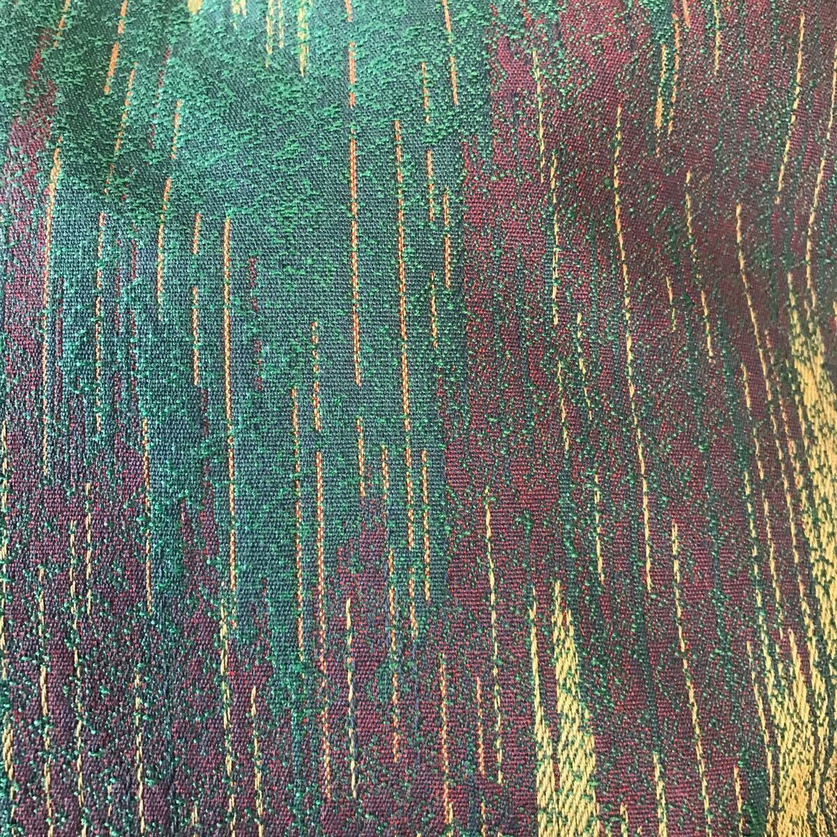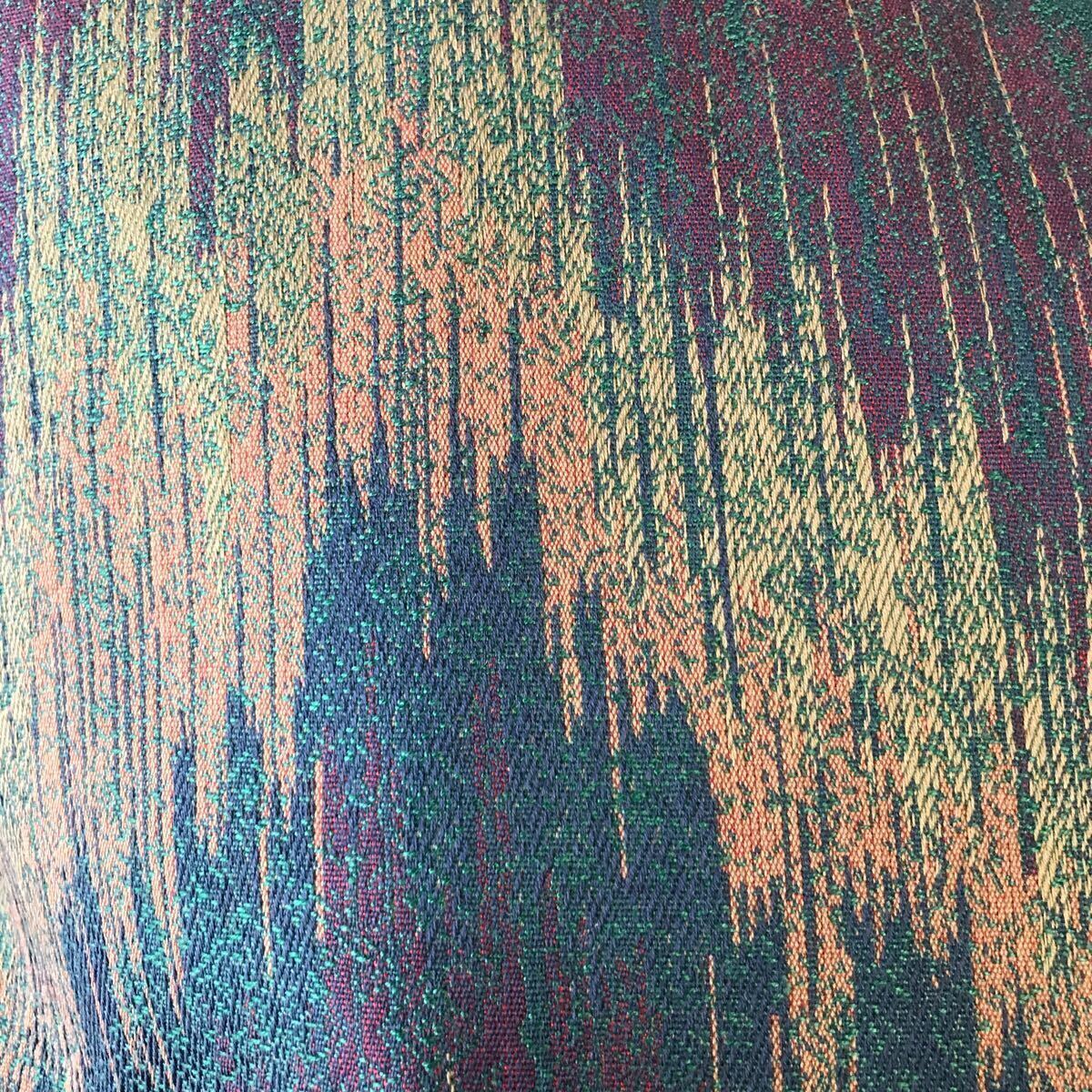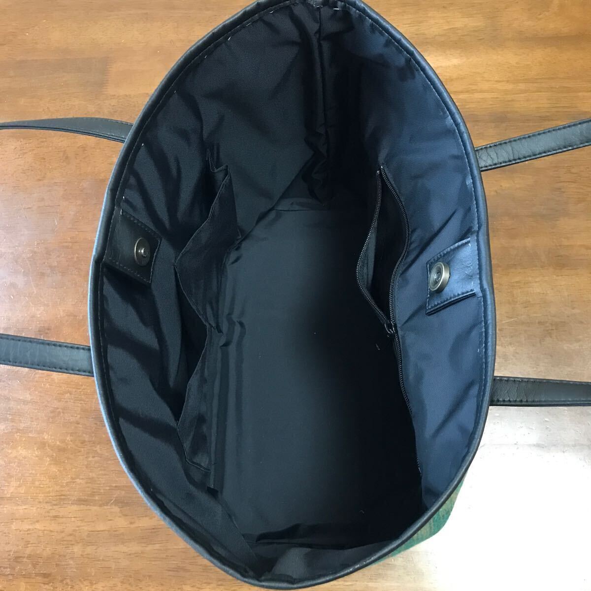 川島織物 繊細なかすり柄のジャガード生地の大きめのトートバッグを作りました。バッグの加工所で作製しました。バッグの口はドットボタン、内側はファスナー付きポケット、携帯電話が入る位のポケットが2つ、使い勝手の良いバッグです。