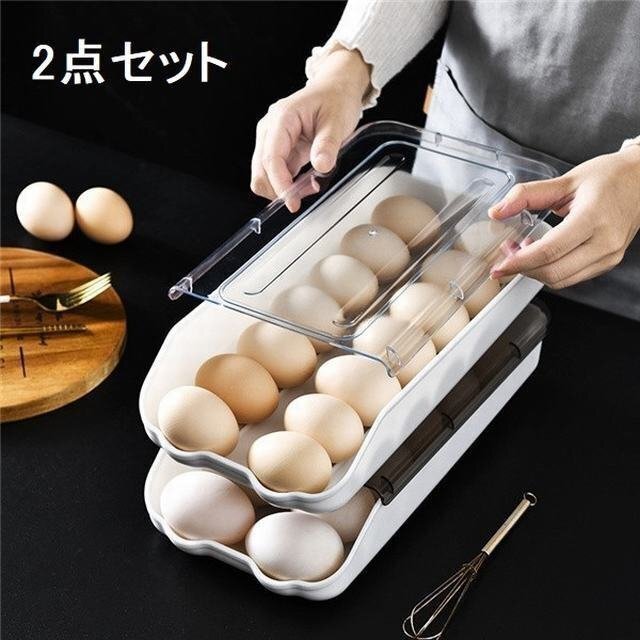LRM3150★卵ケース 卵収納ボックス 冷蔵庫用 持ち運び 大容量 玉子ケース 区分保管 取り出し便利 食品保存容器 2点セット 透明