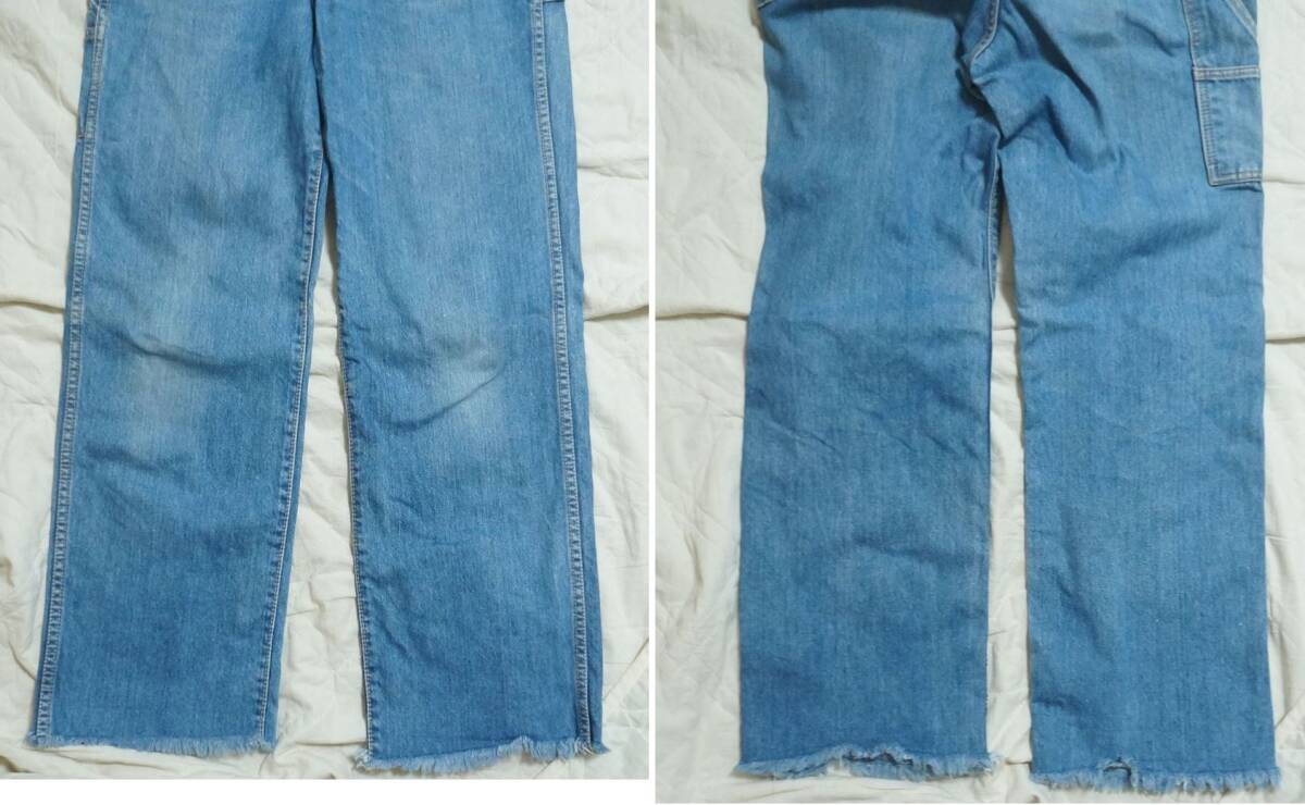 前身ごろ全長(股~上端)56.5cm ワタリ30cm(腿付け根)股下71cm(裾端ほどけてる個所も含む) 裾幅22.5㎝