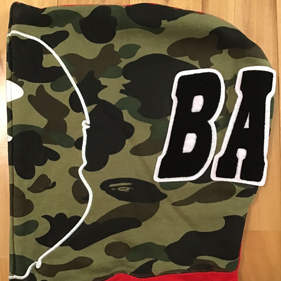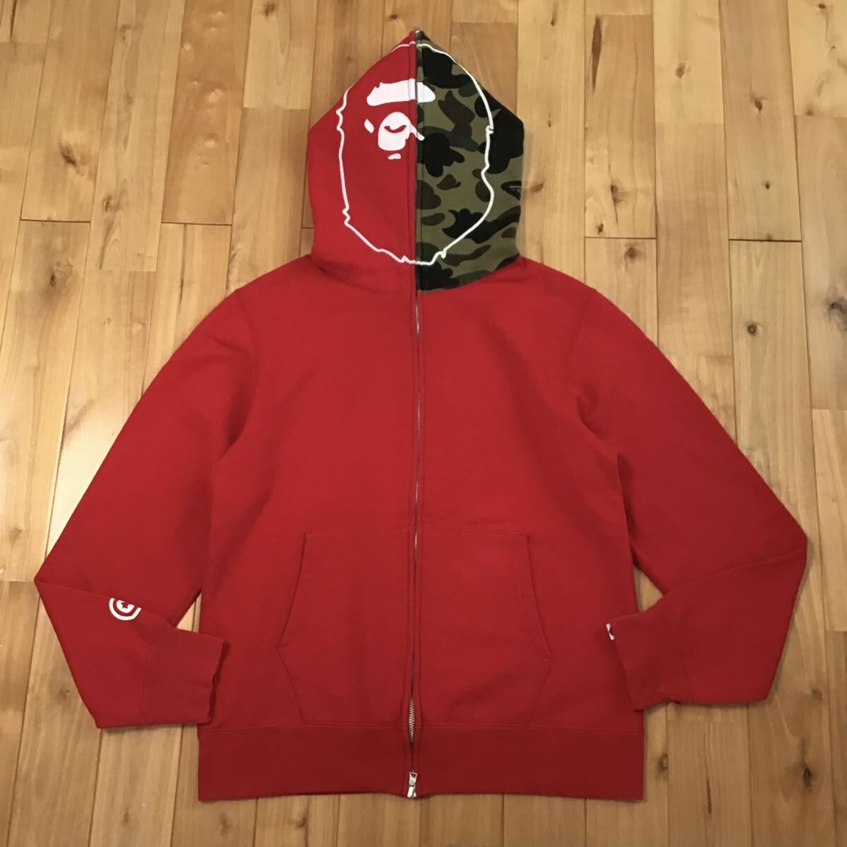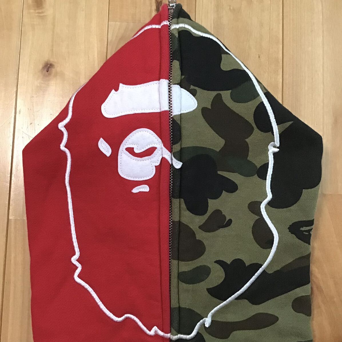 a bathing ape Ape head full zip Hoodie レッド × 1st camo green Lサイズ です★