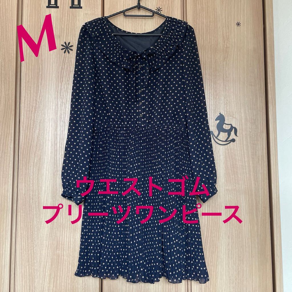 【送料込】850円スタート☆Mウエストゴムクラシカルドット柄プリーツワンピース地雷系ゴスロリロリータ姫☆