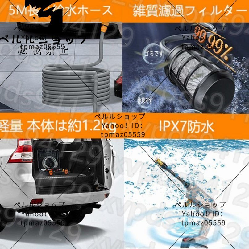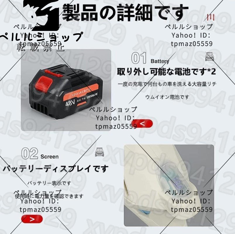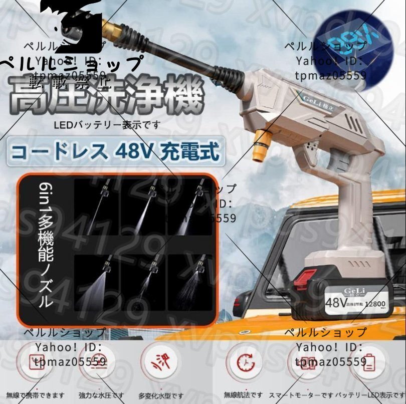 充電式 高圧洗浄機 コードレス 5MPa最大吐出圧力 水噴射量5.2L/min 6種類噴射モード 6-in-1ノズル洗車 強力噴射 48V大容量バッテリー付き