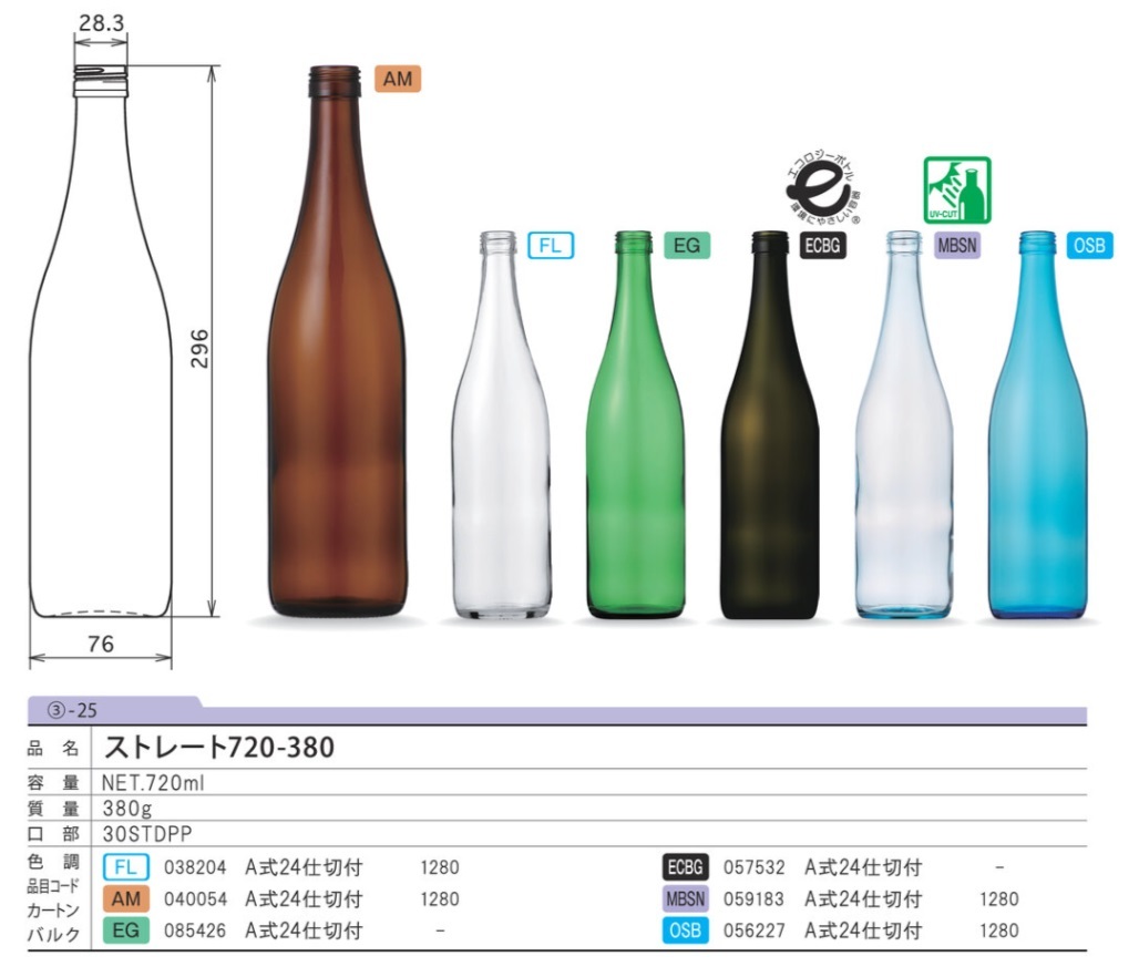 【未使用新品】一本あたり116.3円!! 720ml黒びん (ストレート720-380) 24本入り 黒キャップ付き