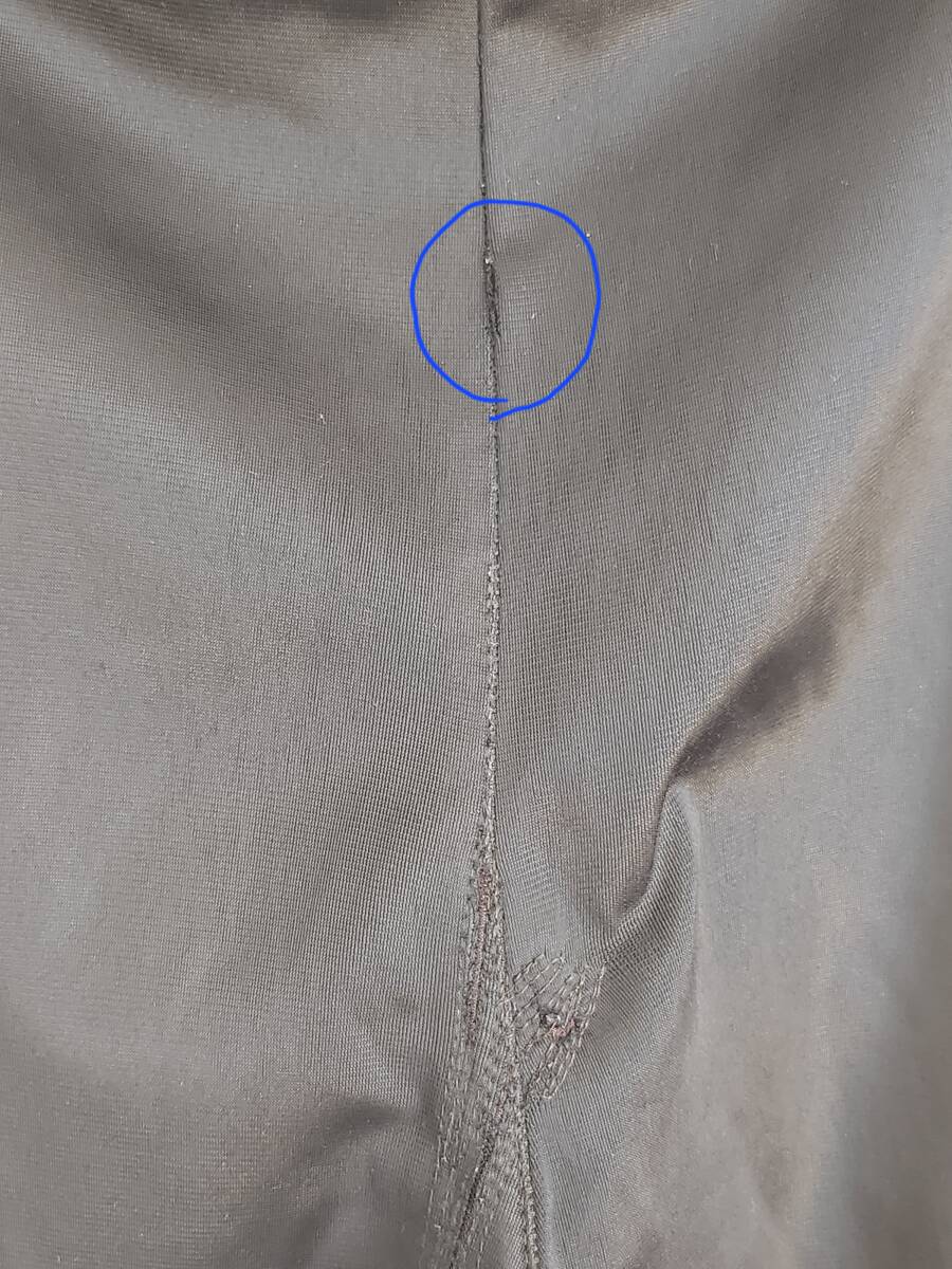 画像5.6 ヒップ部分にほつれ,直し 画像7.8 両裾かかと部分にダメージ