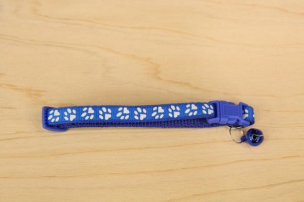 肉球 ペット 首輪 鈴 長さ調節可能 ネコ 犬 首輪 ナイロン(ブルー)