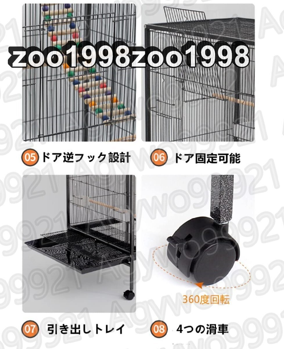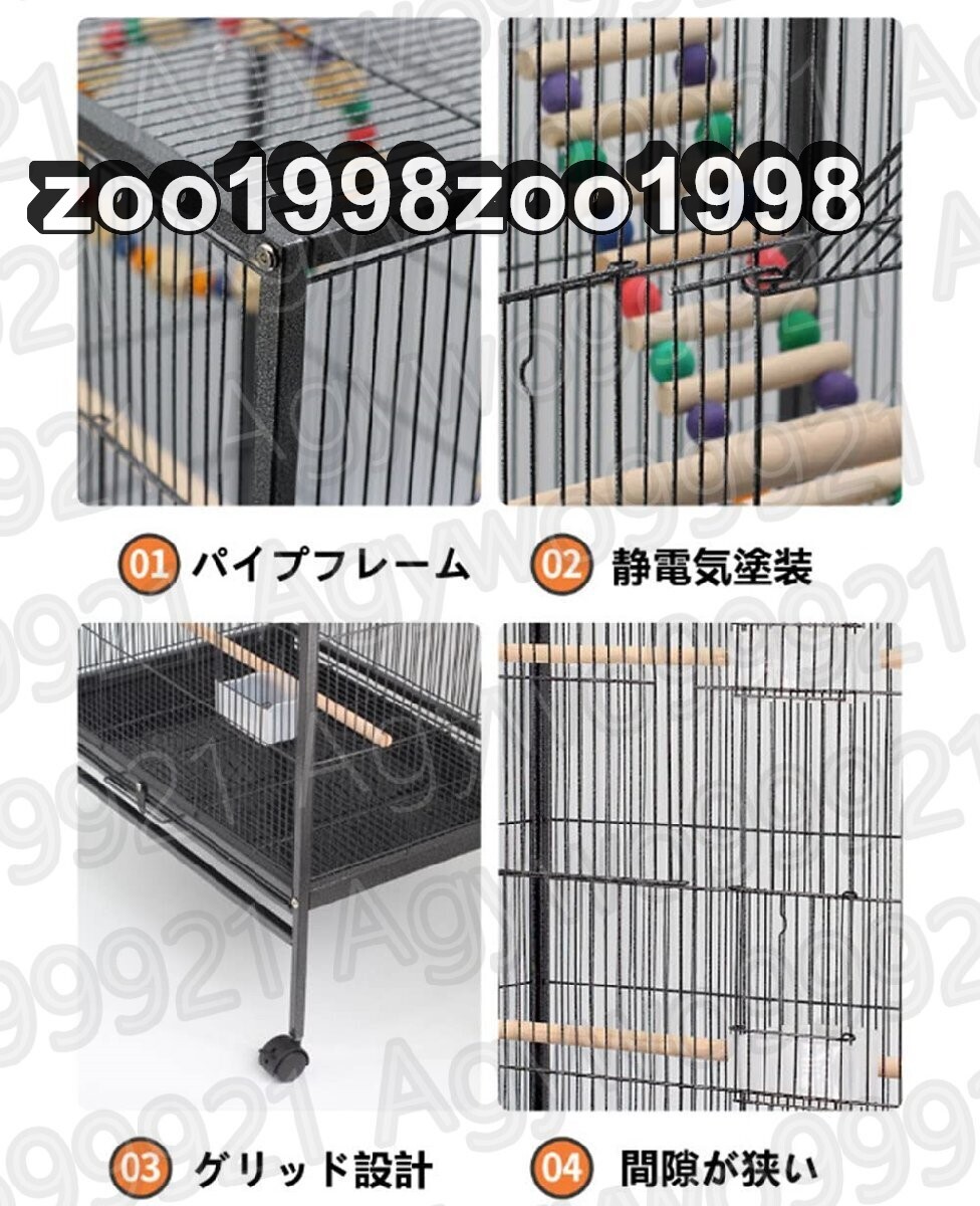 鳥ケージ 鳥かご 大型 豪華ケージ 大きい 複数飼い インコ オウムケージ オカメ セキセイ ボタン 文鳥 45.5*45.5*77CM ブラック
