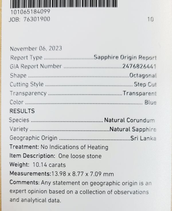 • 中石:天然非加熱サファイア(10.14ct・Octagonal Step Cut・スリランカ産)