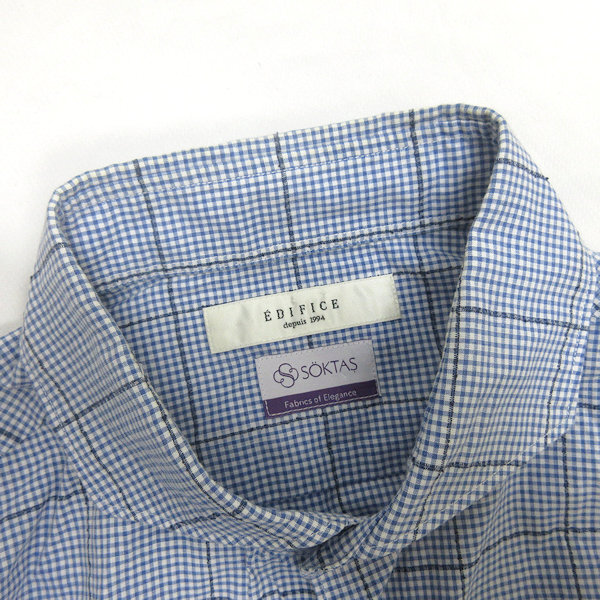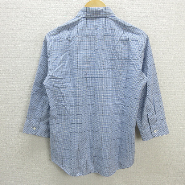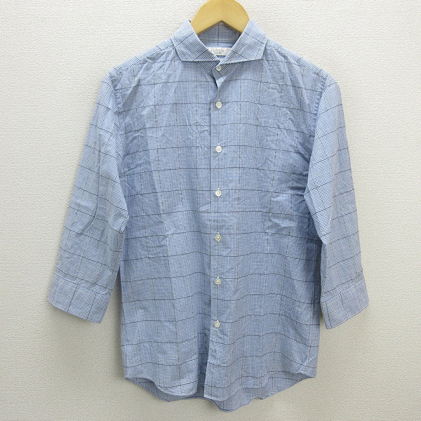 G■エディフィス/EDIFICE SOKTAS 七分袖シャツ/チェック柄【M】青紺/men's/98【中古】■