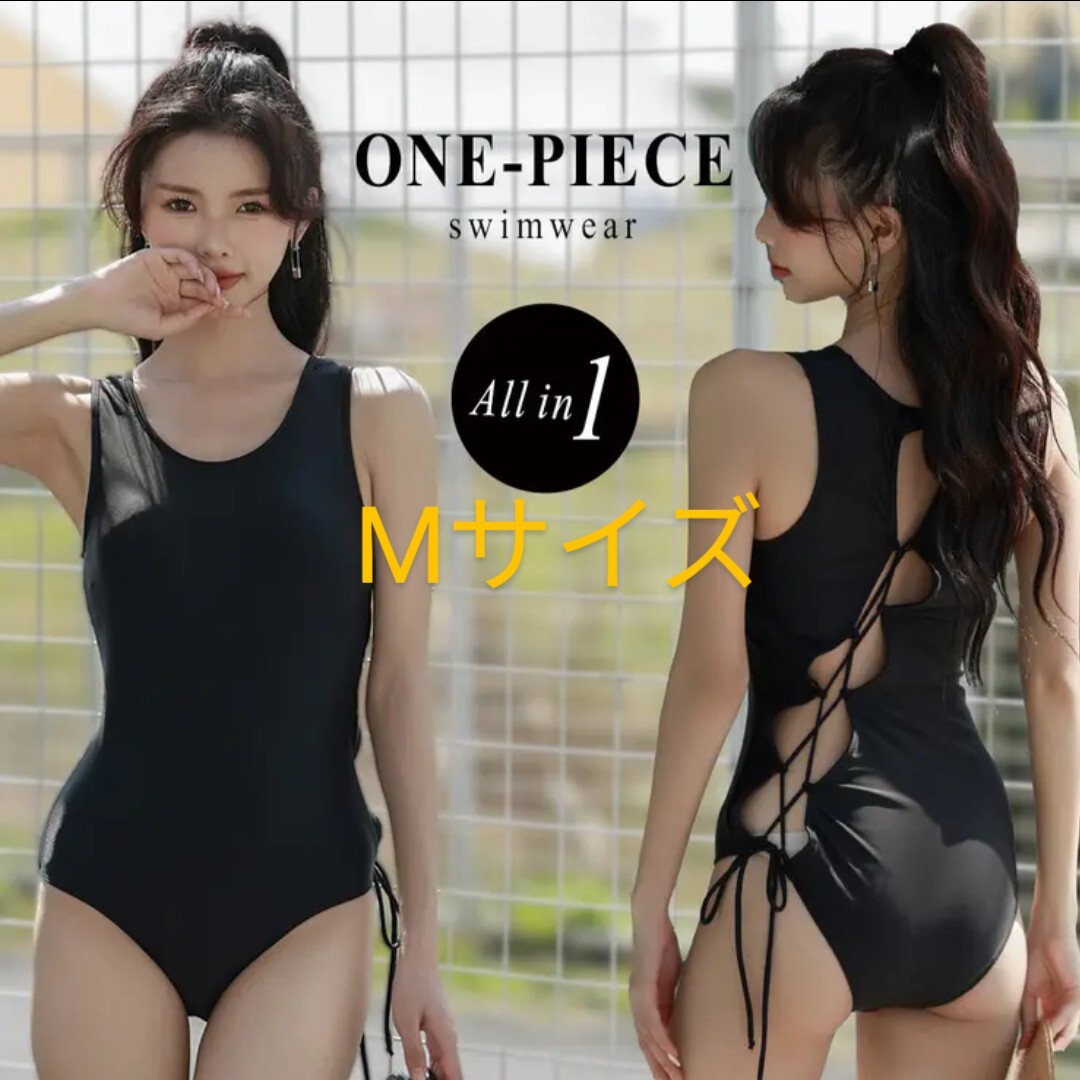 | 《Mサイズ》レースアップオールインワン ワンピース 水着 レディース | |||