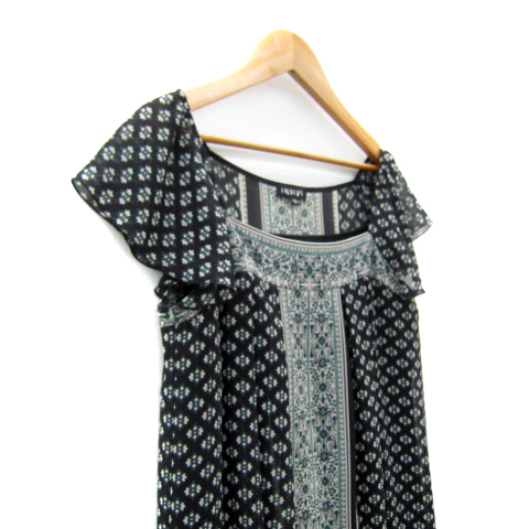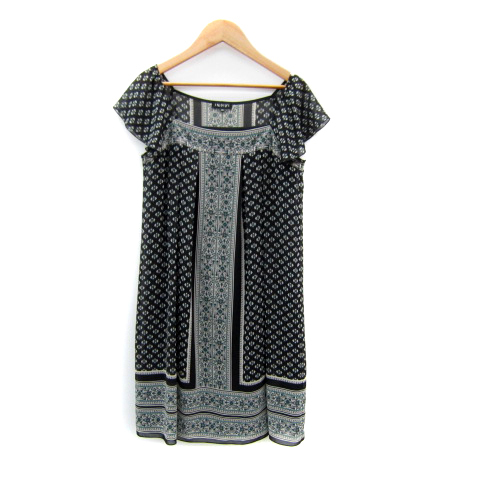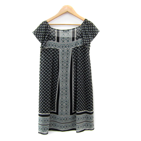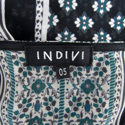 インディヴィ INDIVI ワンピース ひざ丈 半袖 総柄 ペチコート付き 2点セット 05 黒 ブラック 緑 グリーン /SY23 レディース