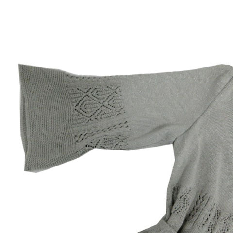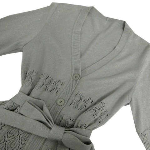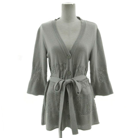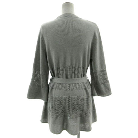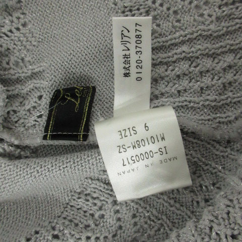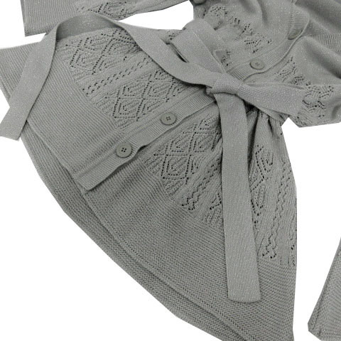 レリアン Leilian カーディガン ニット 七分袖 フレアスリーブ 鍵編み切替え ラメ リボンベルト 日本製 コットン混 グレー 9