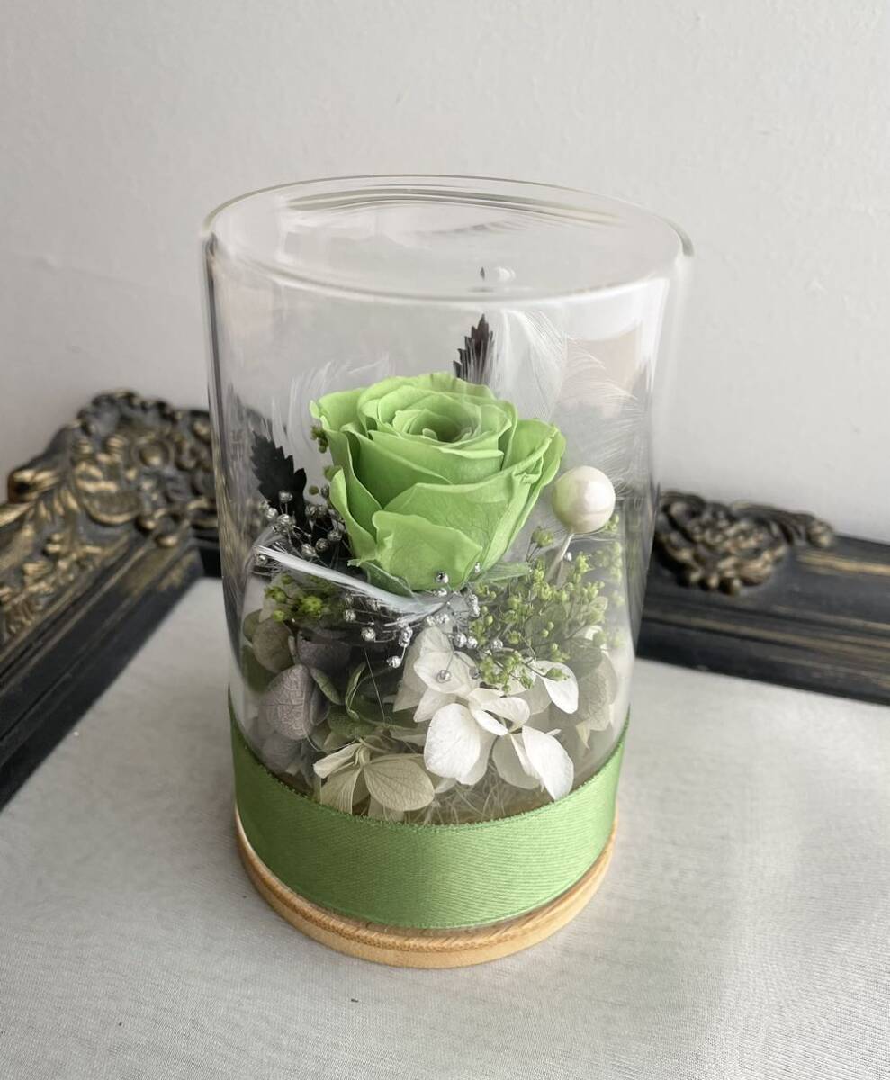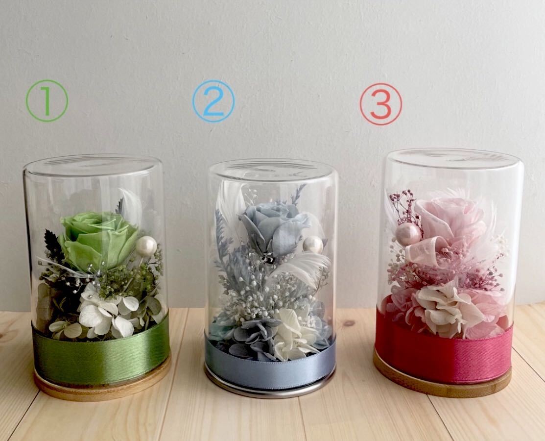 プリザーブドフラワー、コンパクトなガラスケースです♪
