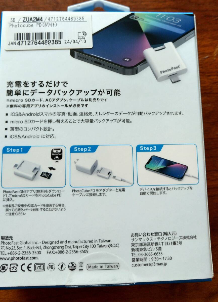 充電をするだけで簡単にSDカードにデータバックアップが可能。