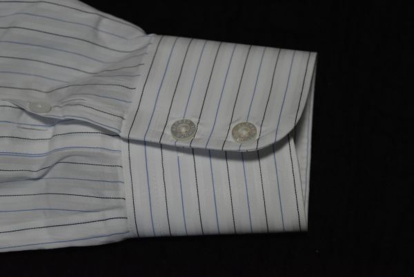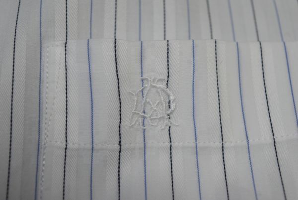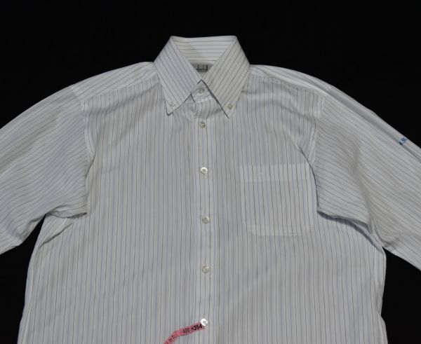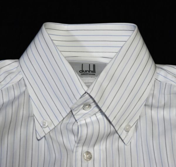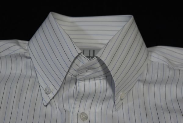 ★ダンヒル★DUNHILL★新ロゴ刺繍、白地ストライプの長袖シャツ M 39