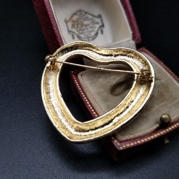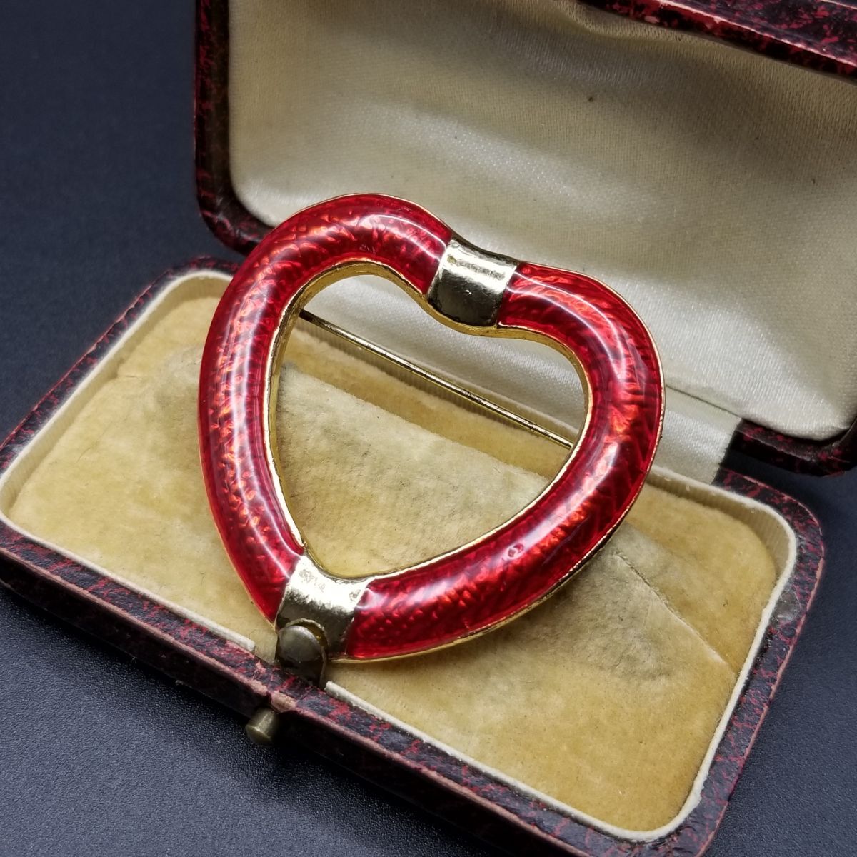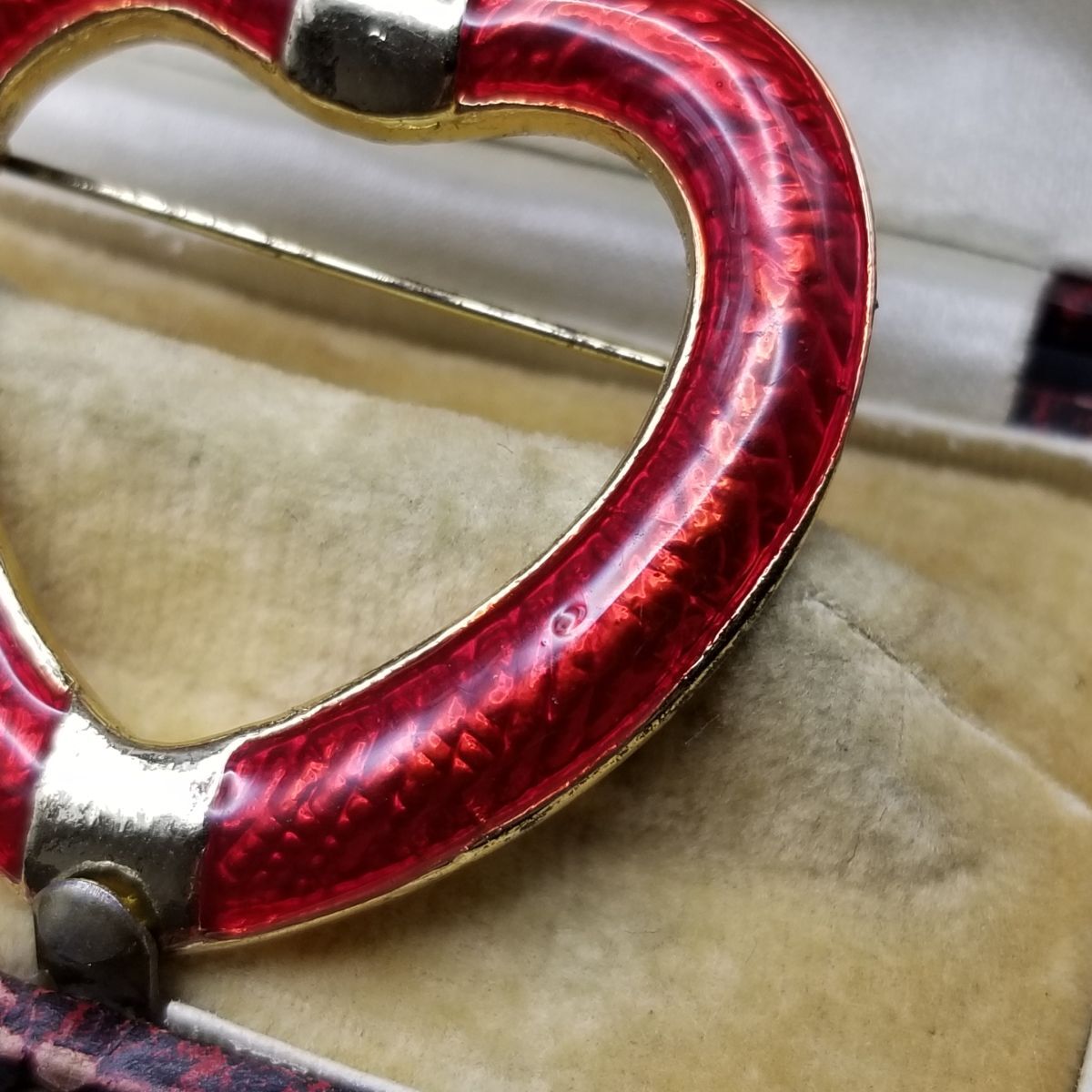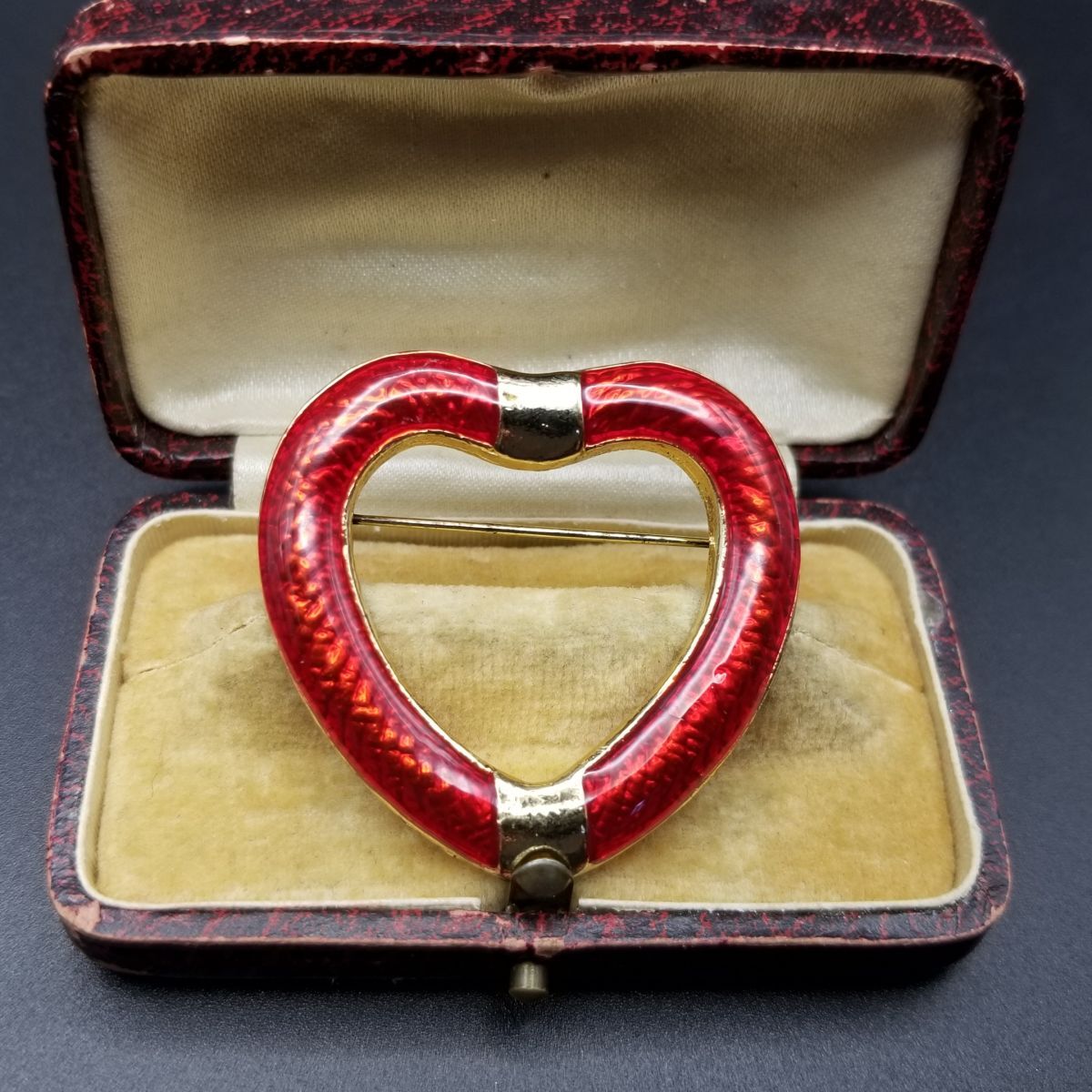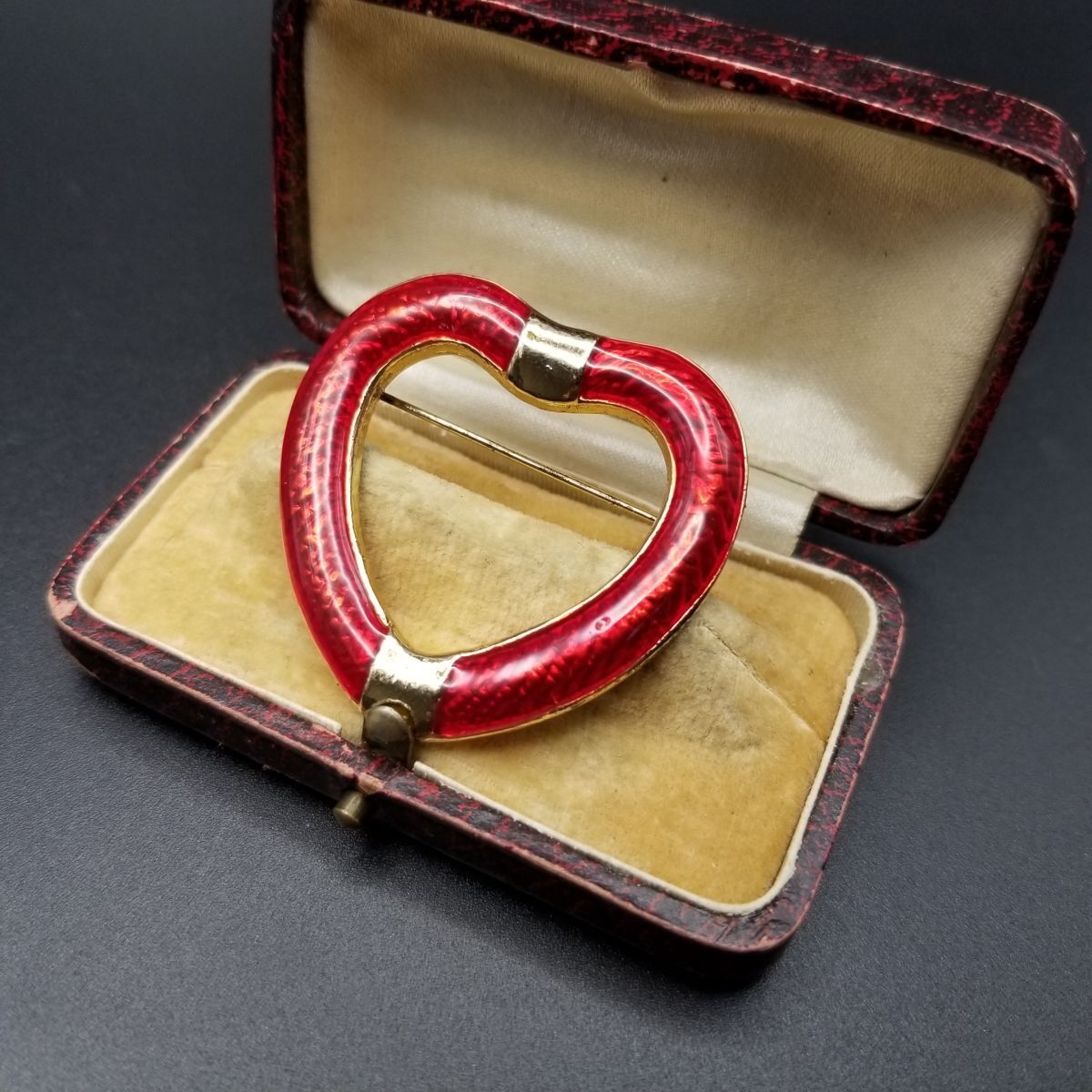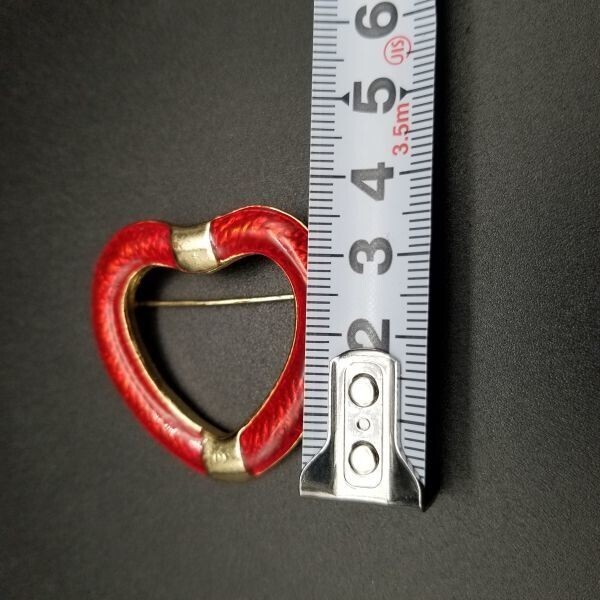 真っ赤なハート フレーム ヴィンテージ ブローチ エナメル 存在感 Red Heart レトロ YS9811