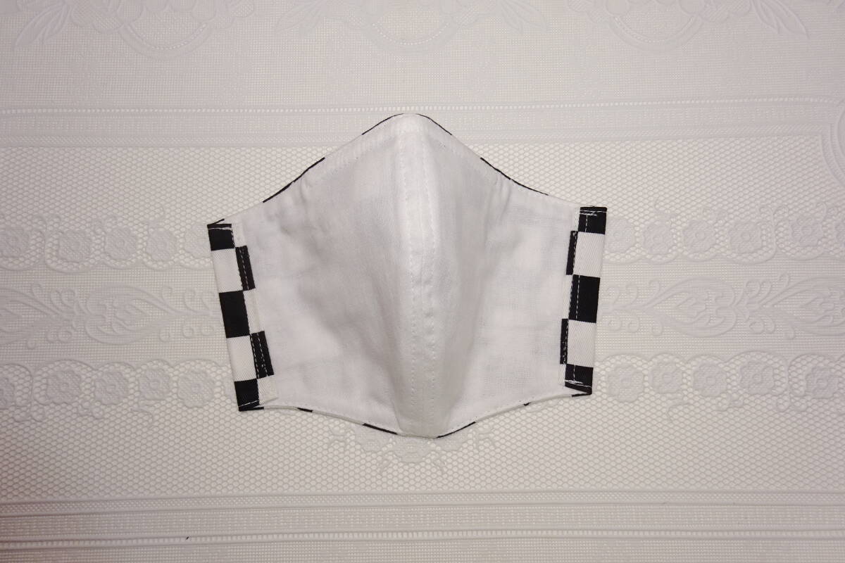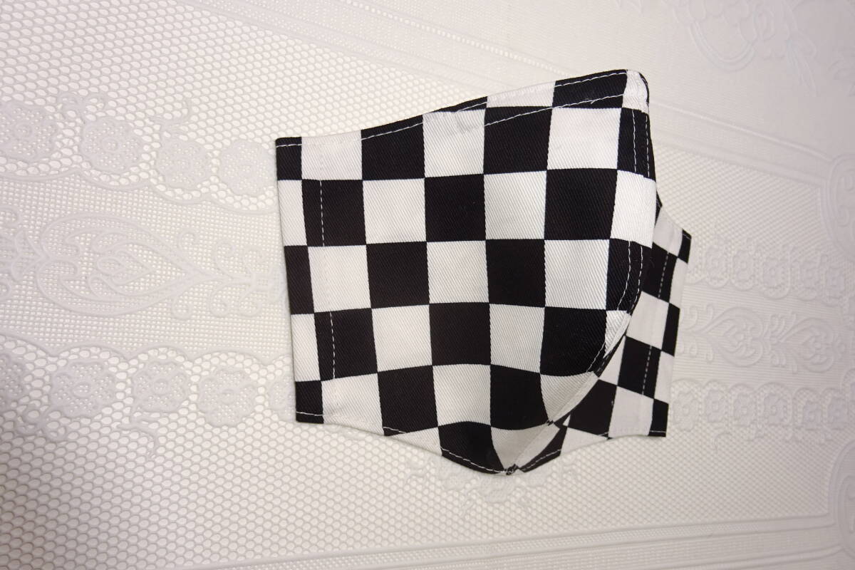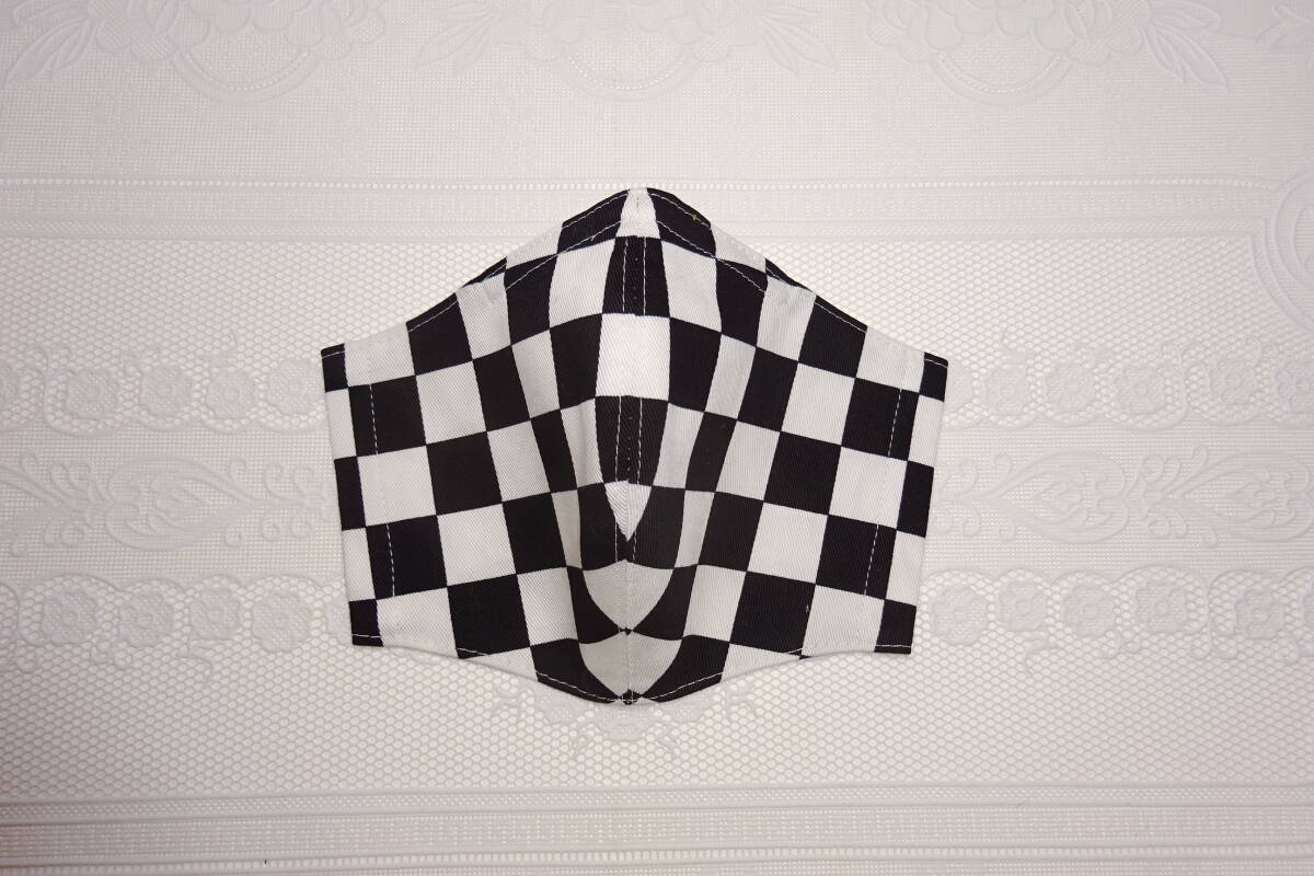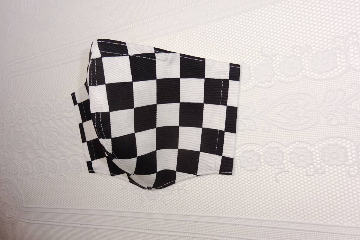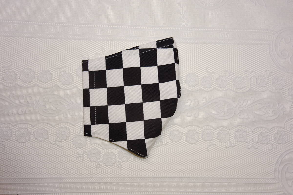 Mサイズ チェッカー チェック ブロック ノーズワイヤー入り 市松模様 ブラック ホワイト インナーマスク ハンドメイド