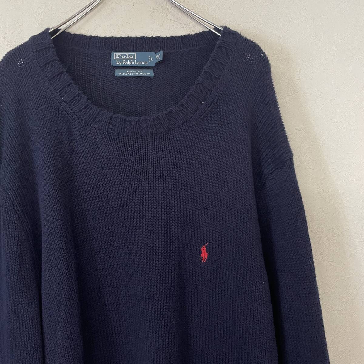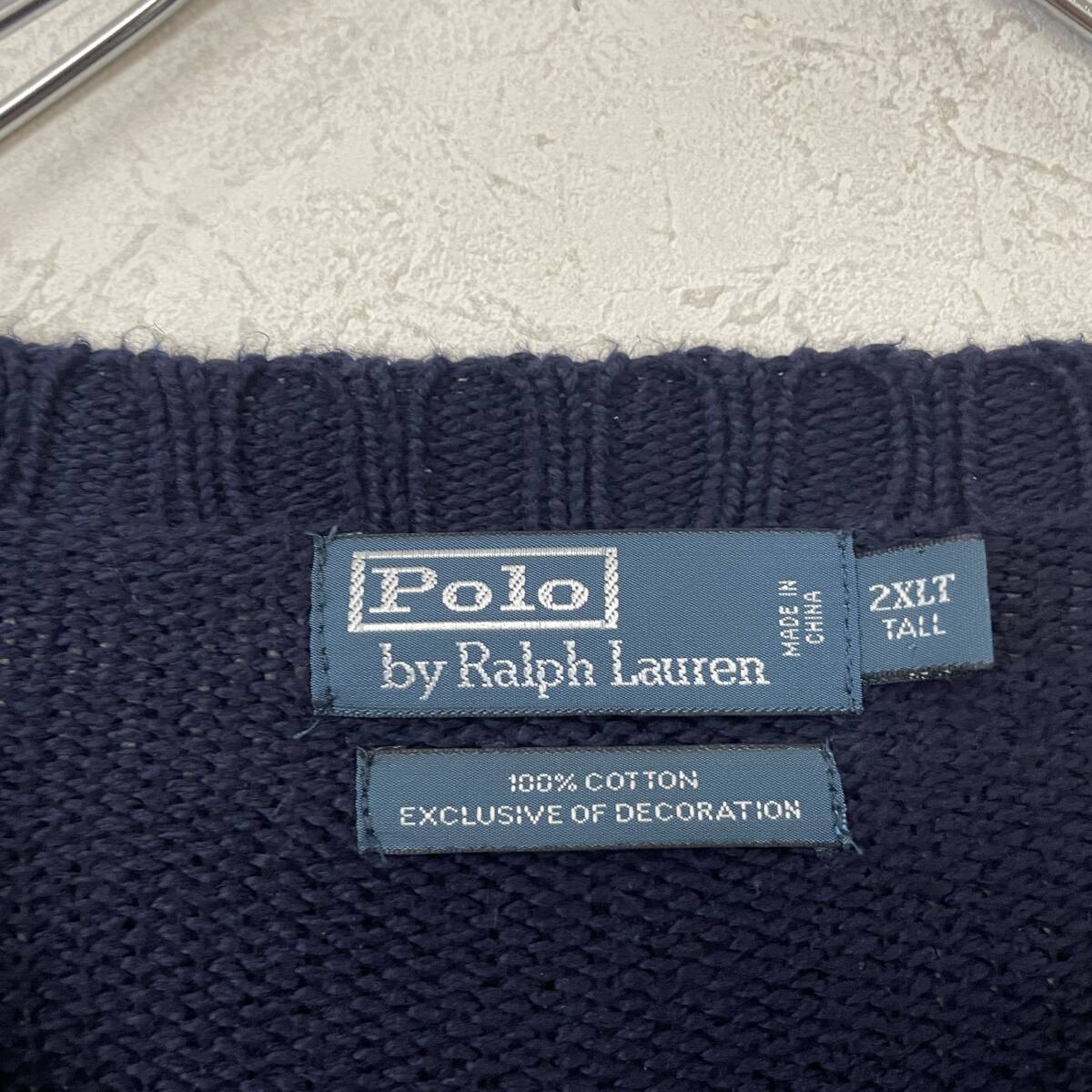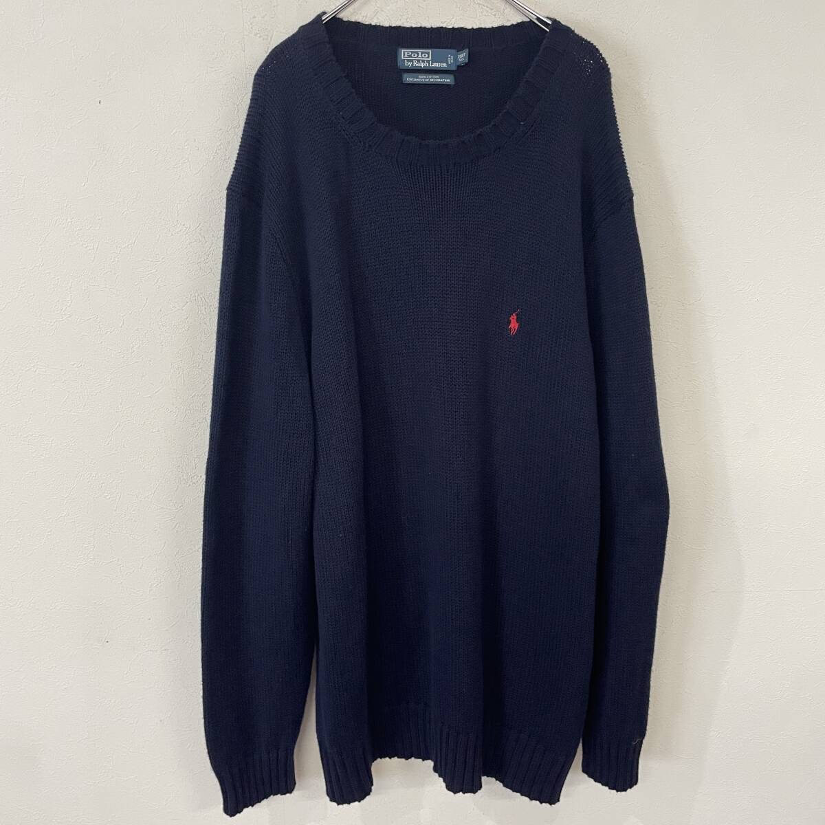 ビンテージ ラルフローレン コットン ニット クルーネック ワンポイント ロゴ 刺繍 2XLT 240612