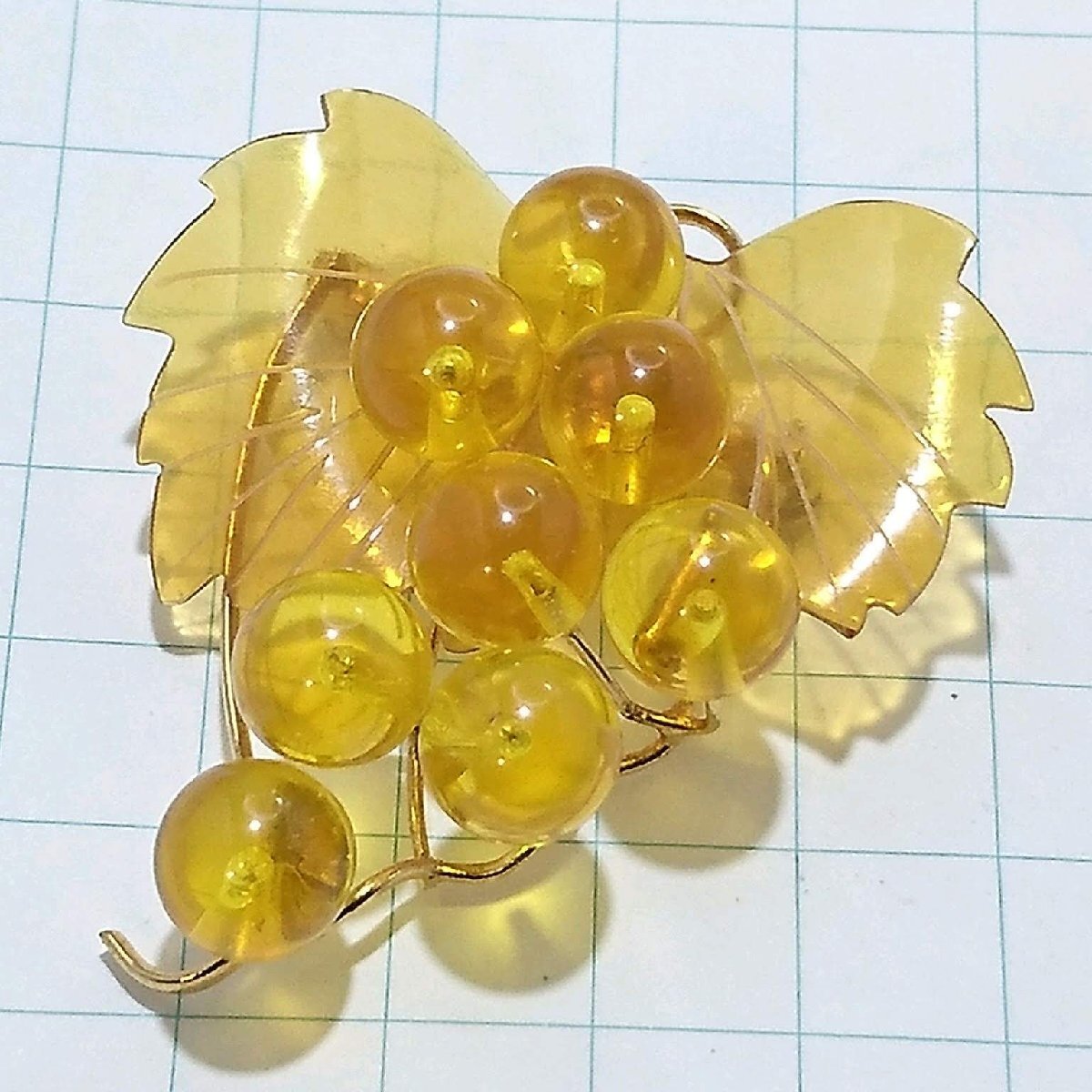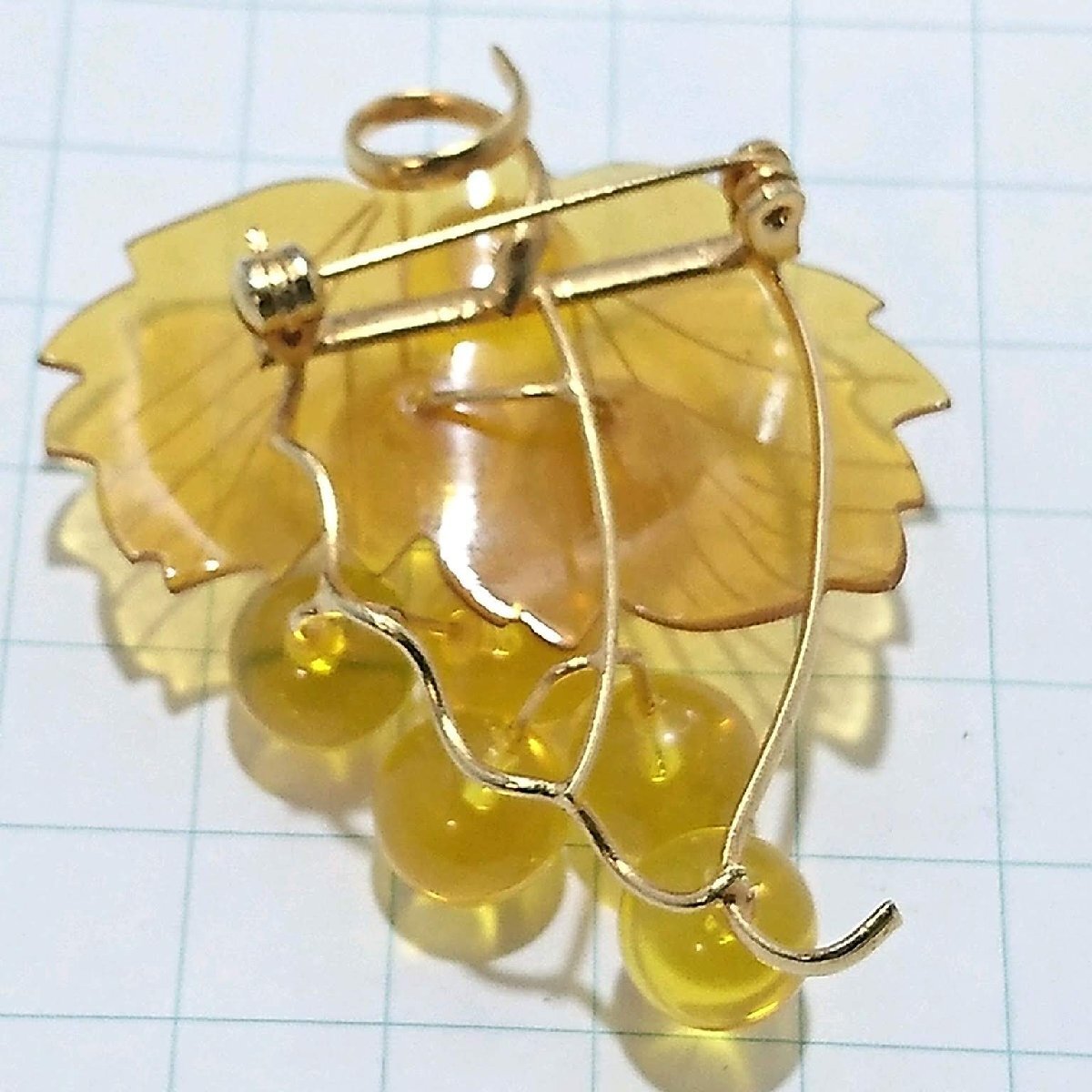送料無料)ビンテージ☆琥珀風 ぶどうモチーフ☆アンティーク ブローチ A24878