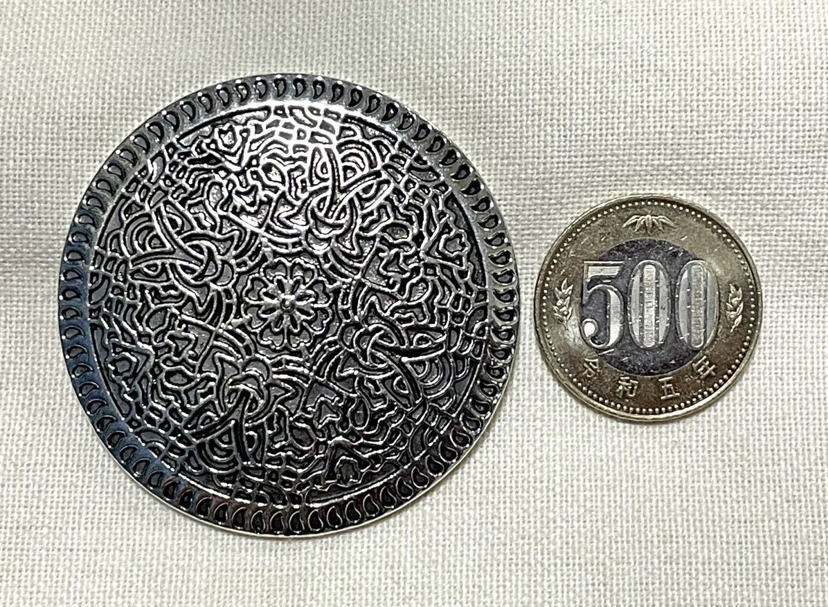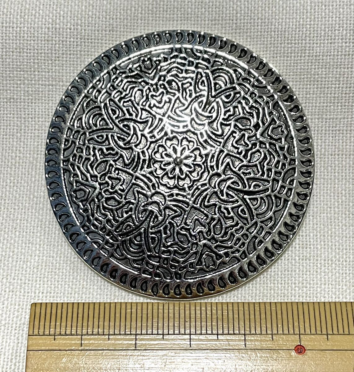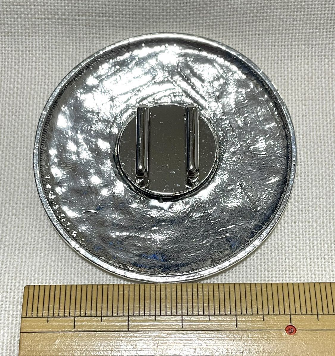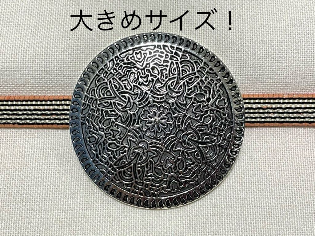銀色の大きめサイズのパーツを帯留めにリメイクしました。