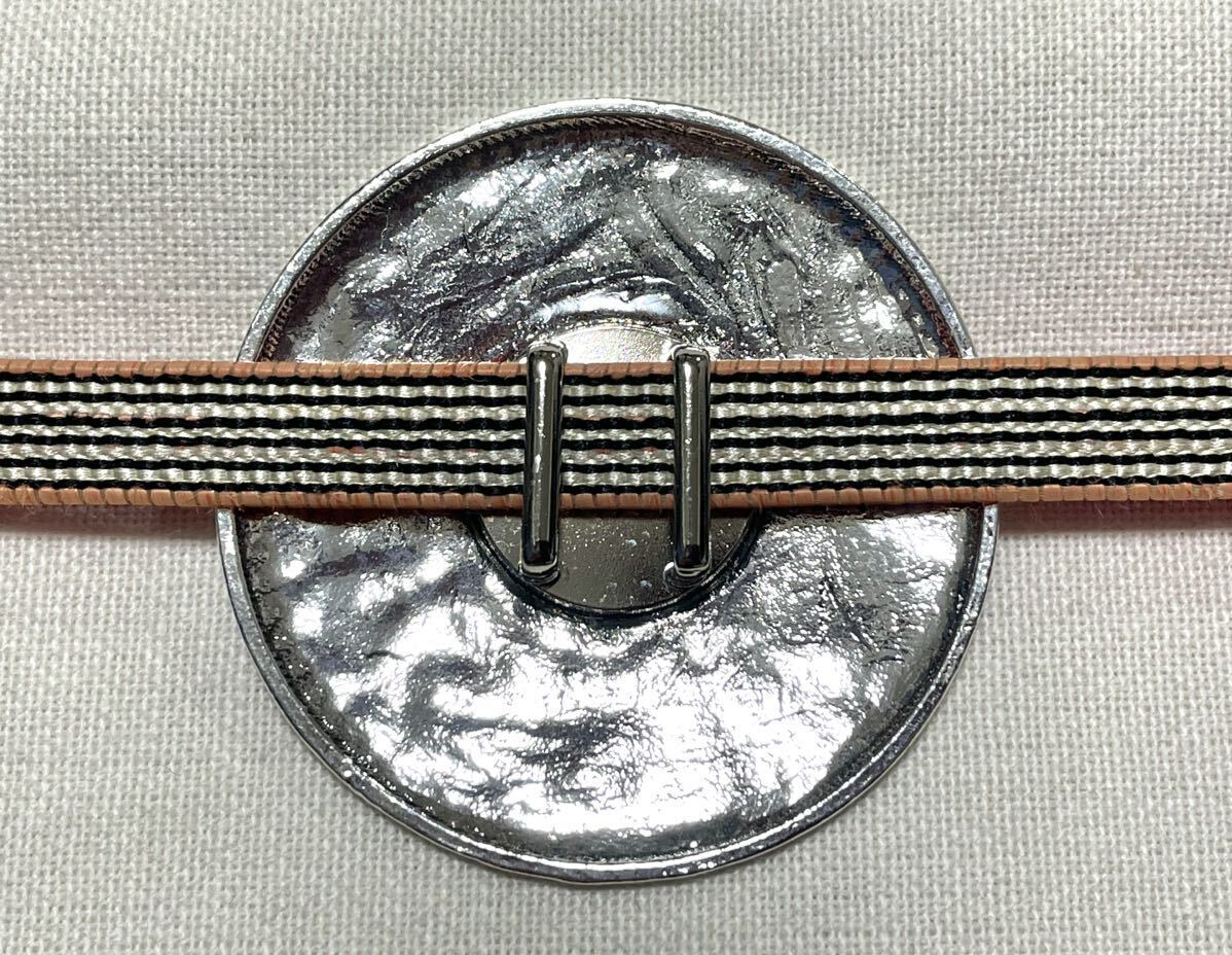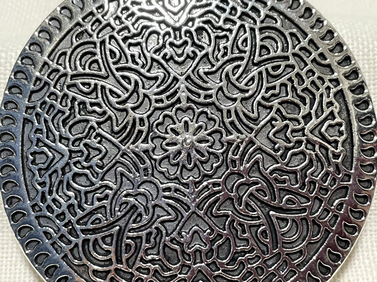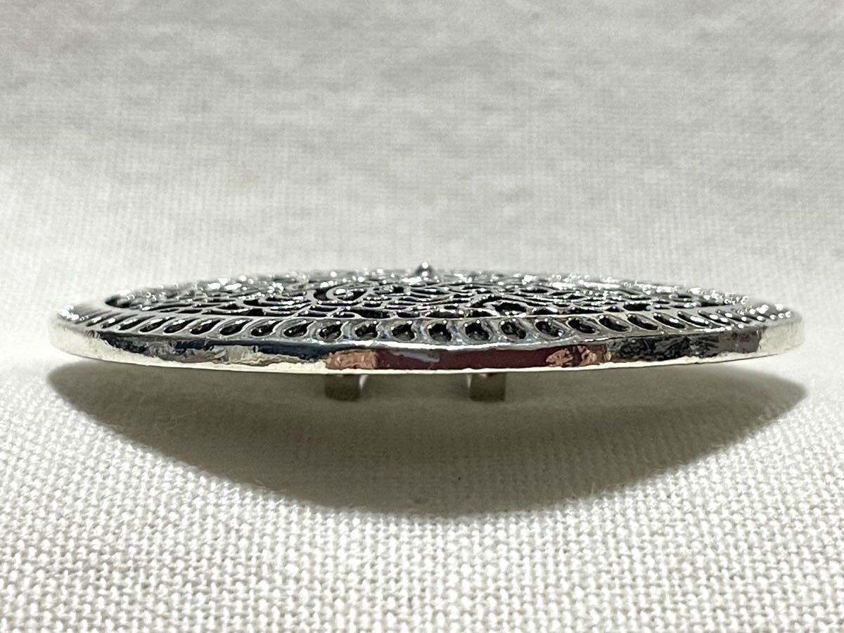 銀色の大きめサイズのパーツを帯留めにリメイクしました。
