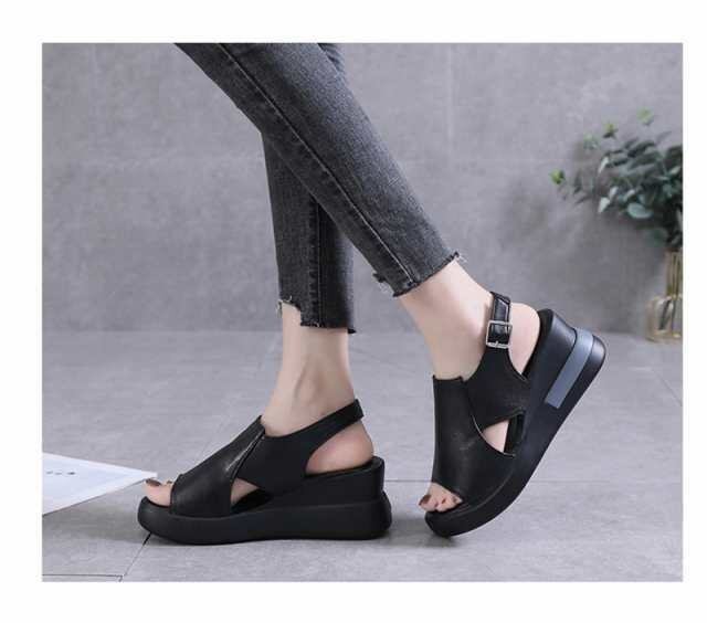 サンダル レディース スポーツサンダル ビーチサンダル サマー 夏 厚底 スニーカーサンダル 美脚 スリッパ 疲れない ブラック 24cm