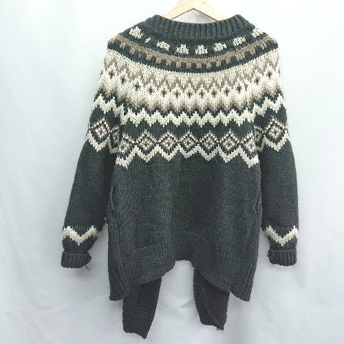 ■ ◎ SENSE OF PLACE ノルディック柄 冬物 長袖 ニットカーディガン サイズF ブラック ベージュ レディース E