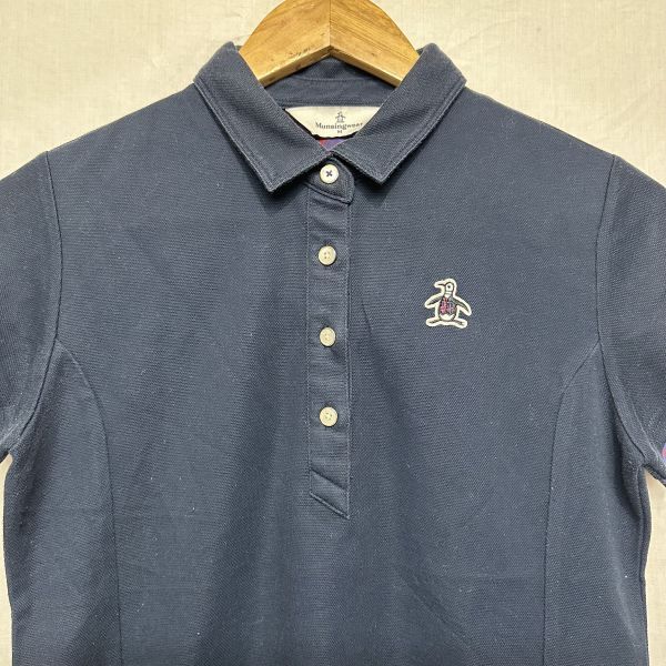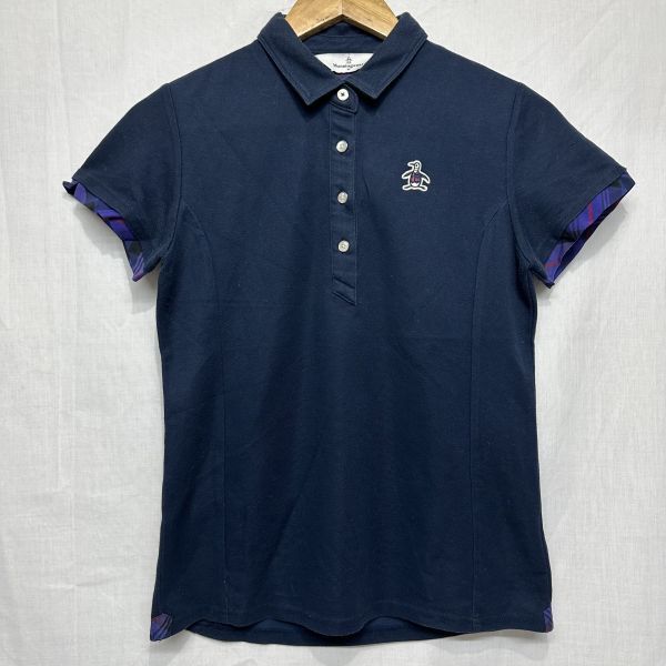 〇Munsingwear マンシング ウェア ショート スリーブ 半袖 ポロ シャツ ゴルフ レディース デサント 紺 ネイビー ペンギン M