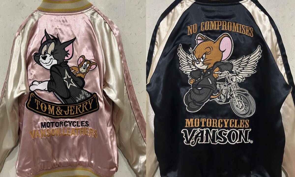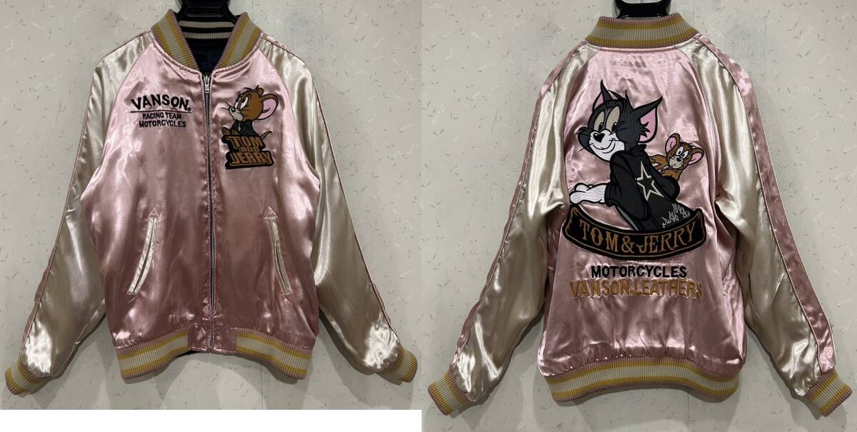 *バンソン VANSON×トムとジェリー TOM &JERRY 刺繍 リバーシブル スカジャン M       BJBD.F