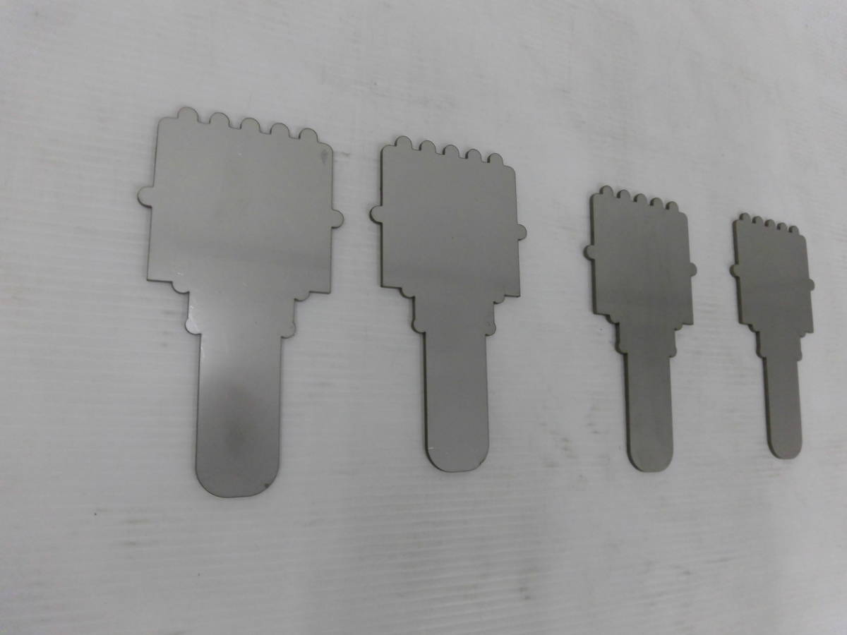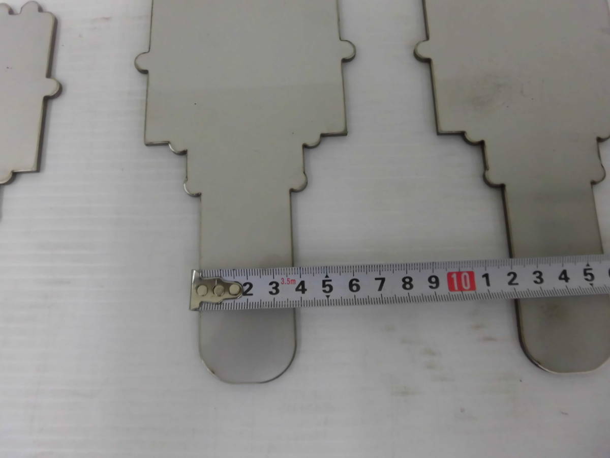 商品説明 | 材質 : ステンレス304 板厚 : 3mm サイズ : 約99mm x 約185mm (長いところの測定です) 数量 : 4枚 重量 : 約1㌔(4枚) 実際の商品は、表示寸法より若干の誤差があります。 製品サイズ : ±2mm程度 角が欠けています。 裏にバリがあります。 切断面が黒くなっています。 サビが有ります。 発送、ご質問の受付は土曜・日曜・祝日は行っておりませんのでご了承願います。 | |
