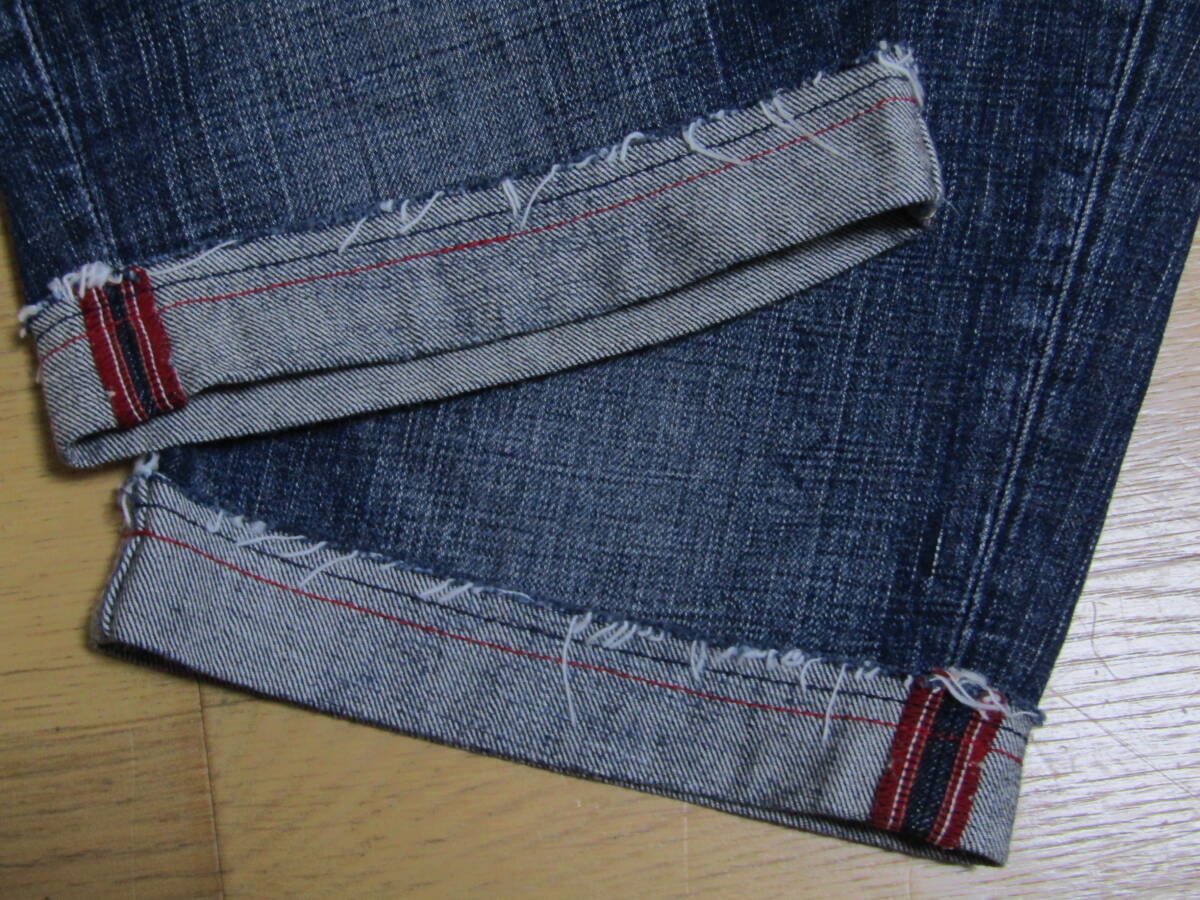 裾は当初からの仕様かどうか、わかりかねますがカットオフをロールアップしたハーフパンツスタイルで、ちょっと可愛い雰囲気です。