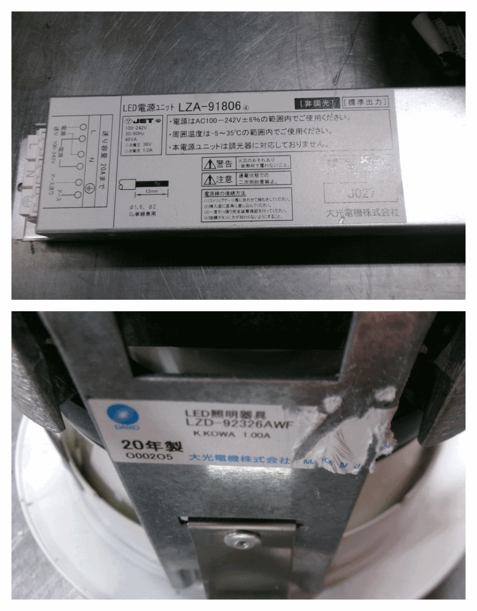 ジャンク品 DAIKO 大光電機 ダウンライト(LZD-92326AWF) 非調光用電源(LZA-91806) 7個セット 2020年製 LED照明器具
