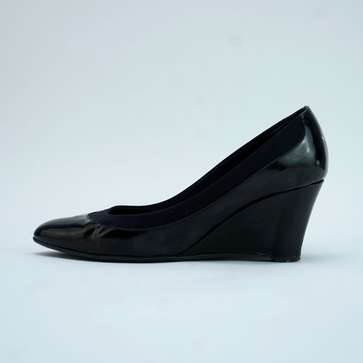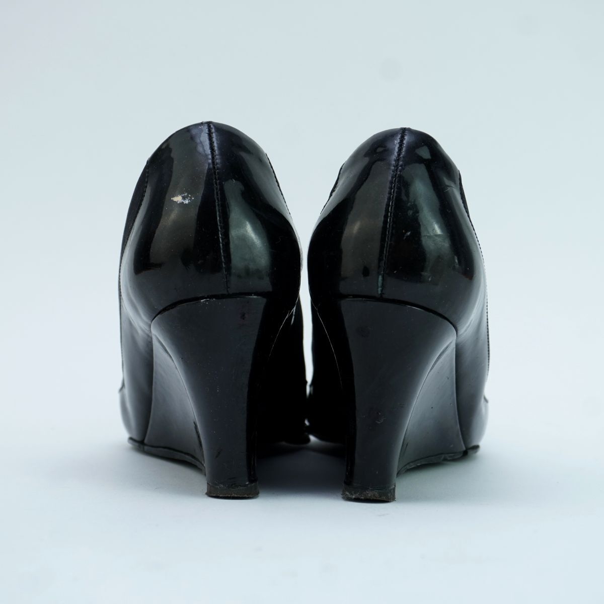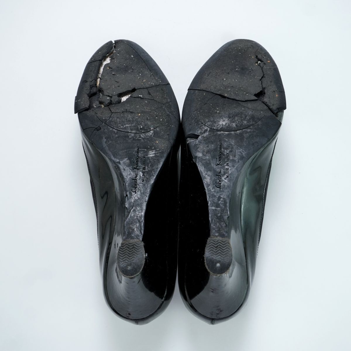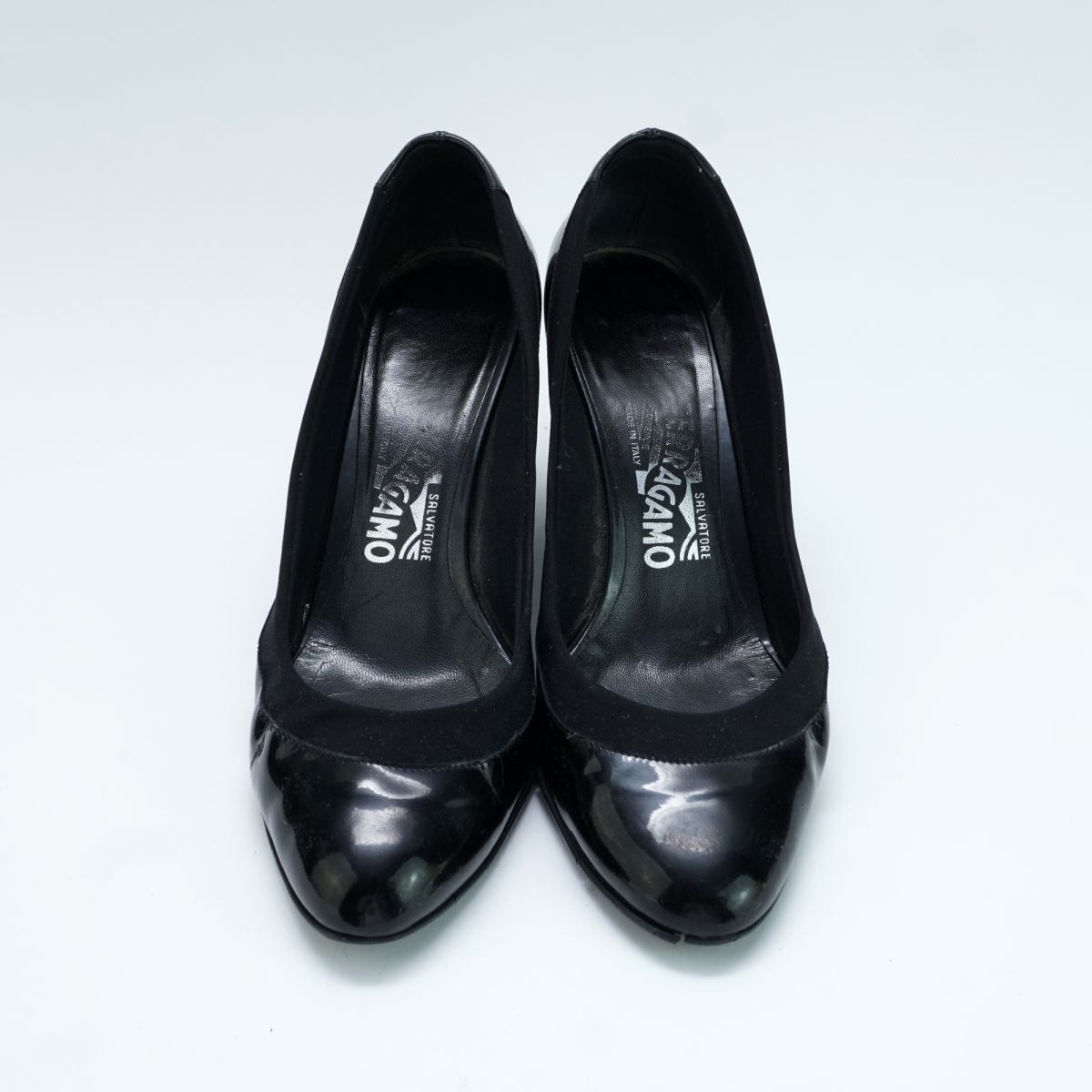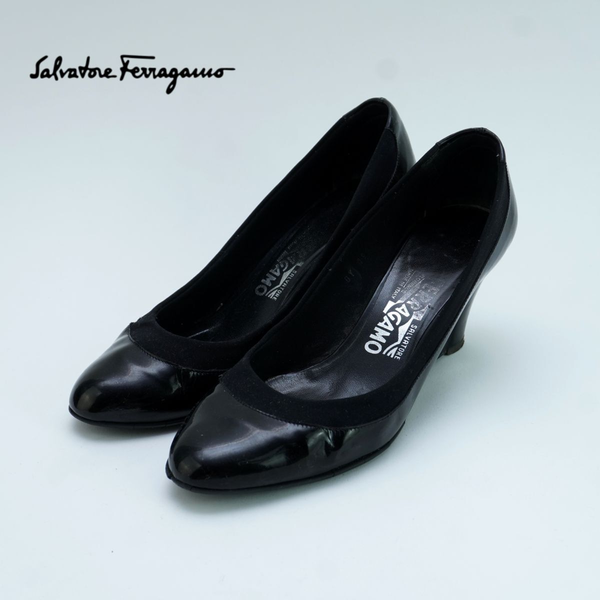 Salvatore Ferragamo サルヴァトーレフェラガモ 6 1/2 24.0 パンプス ウェッジソール 素材切替 エナメル 黒 ブラック/QC33