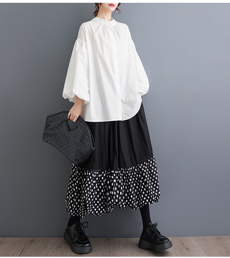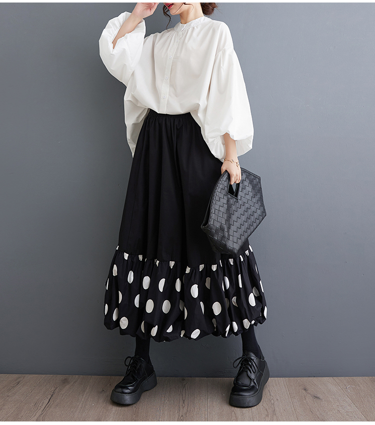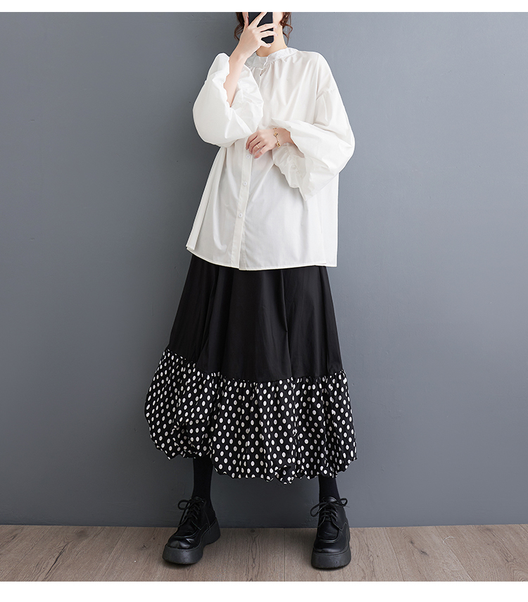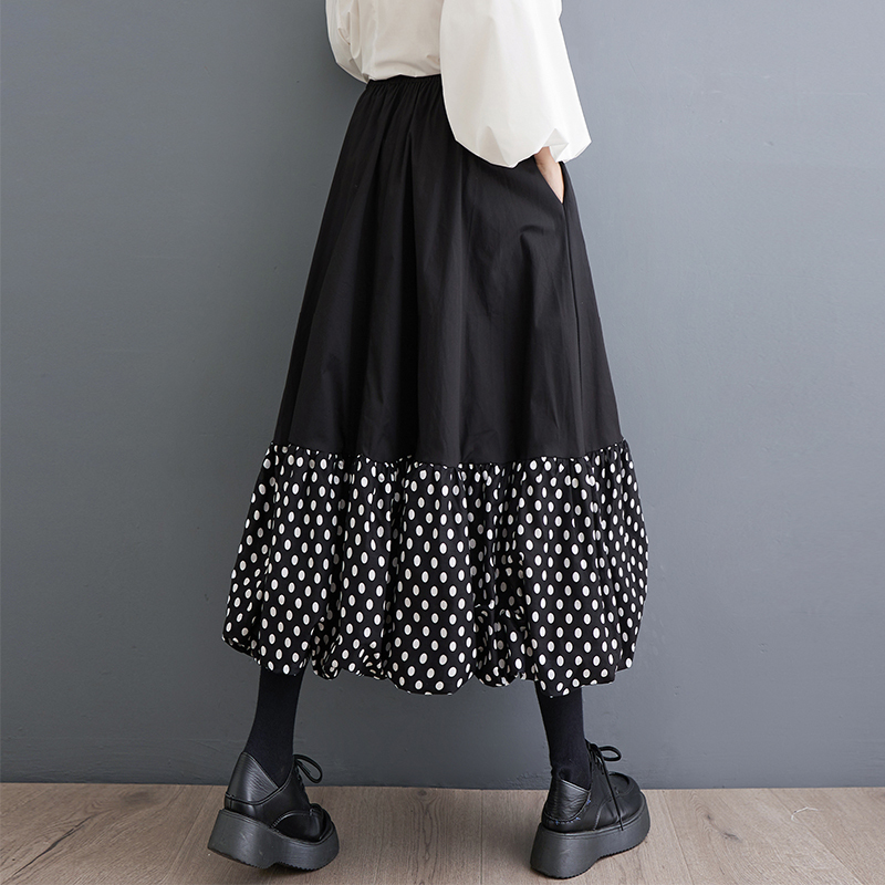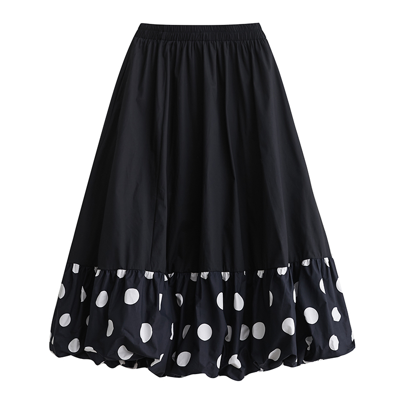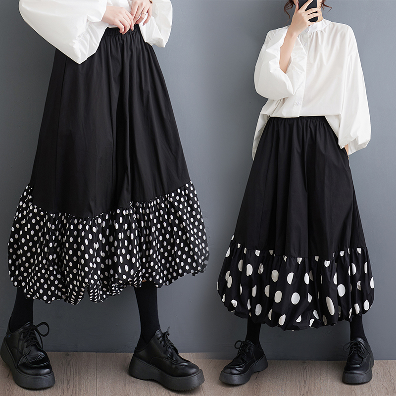 「同梱1万円送料無料」春夏*新作**カジュアル*20304050代*水玉柄*ドット柄切り替えゆったり大きいサイズ*ロングスカート*