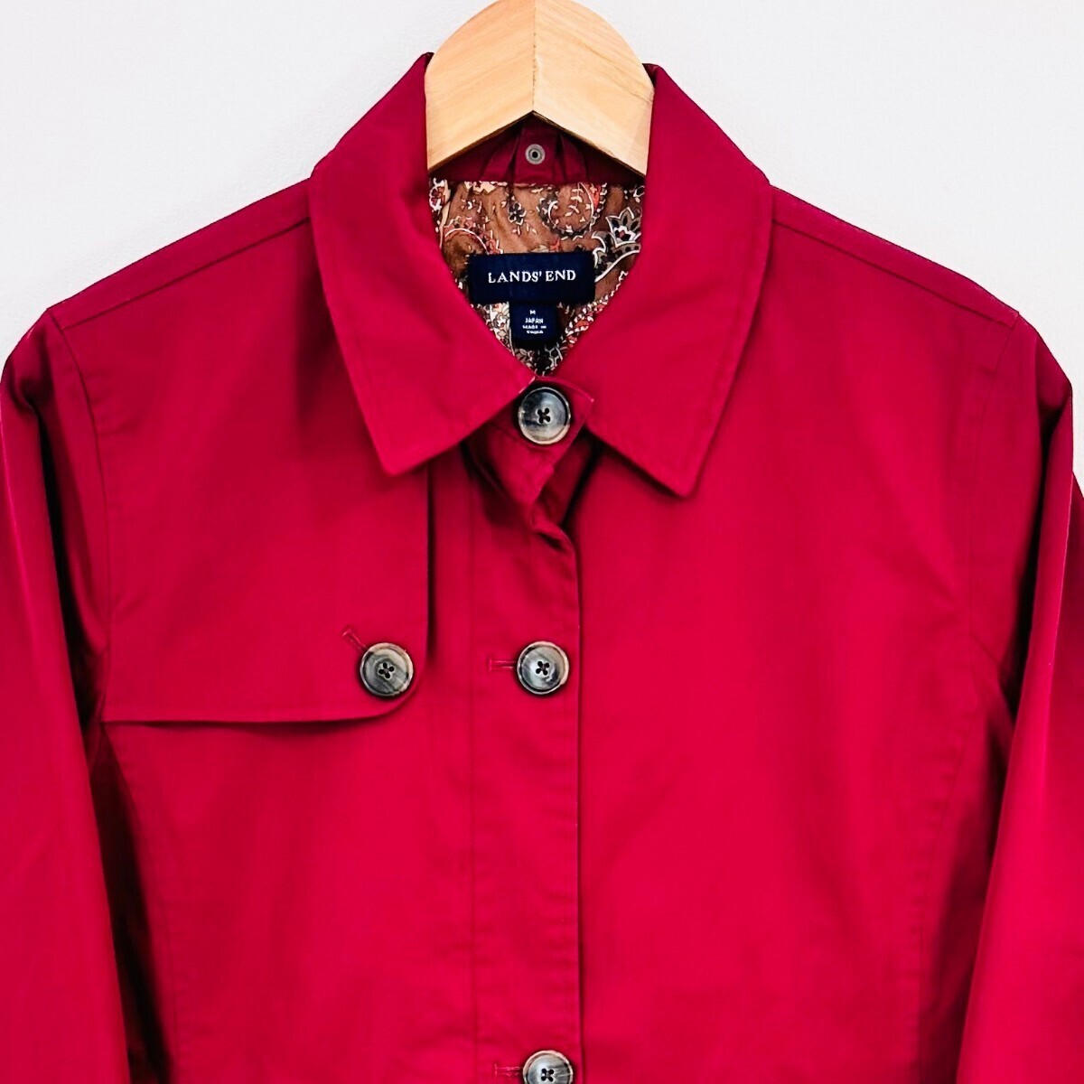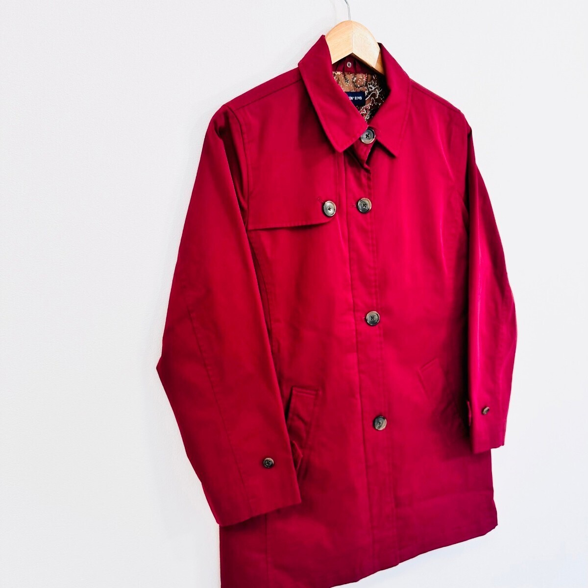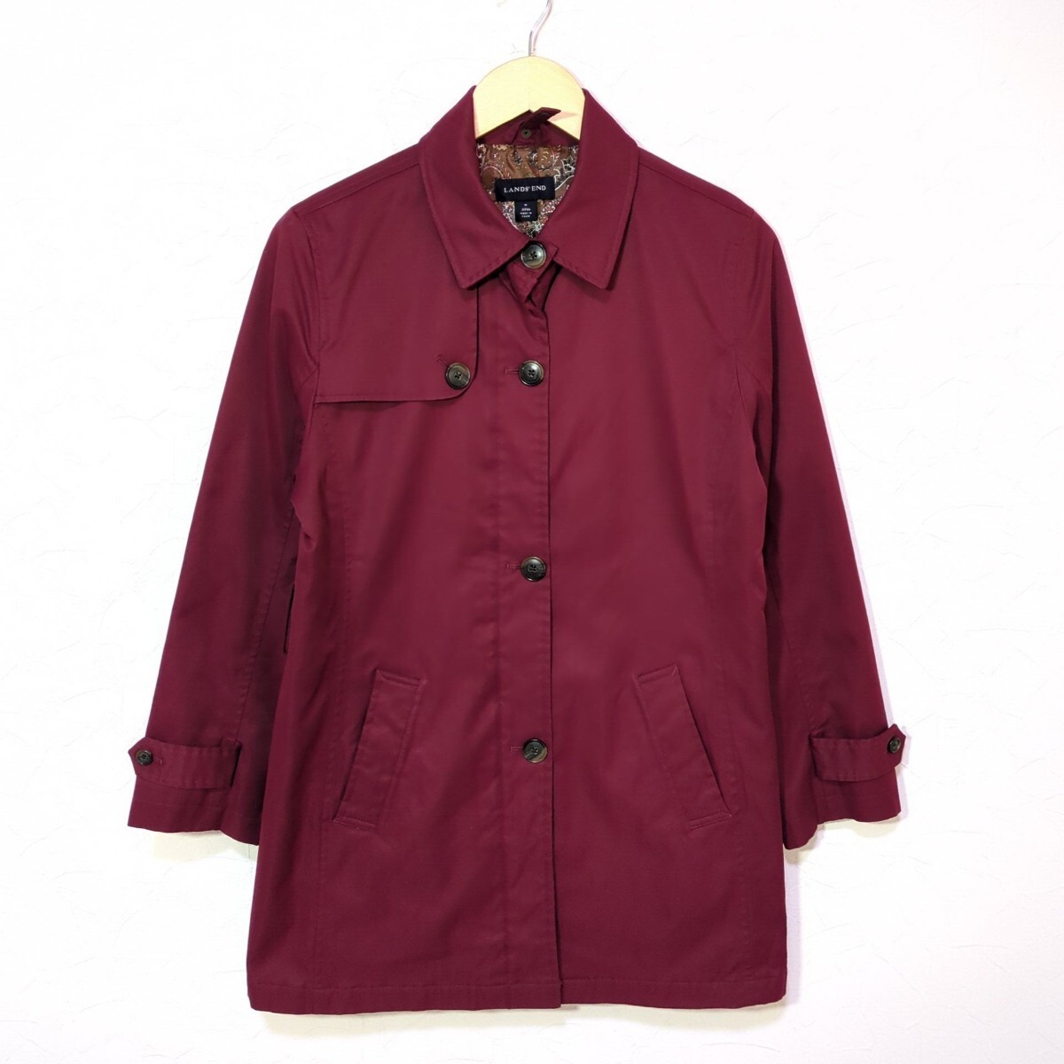 FA465iL LAND'S END ランズエンド サイズM ステンカラーコート スプリングコート ボルドー レディース 裏地ペイズリー柄 お洒落