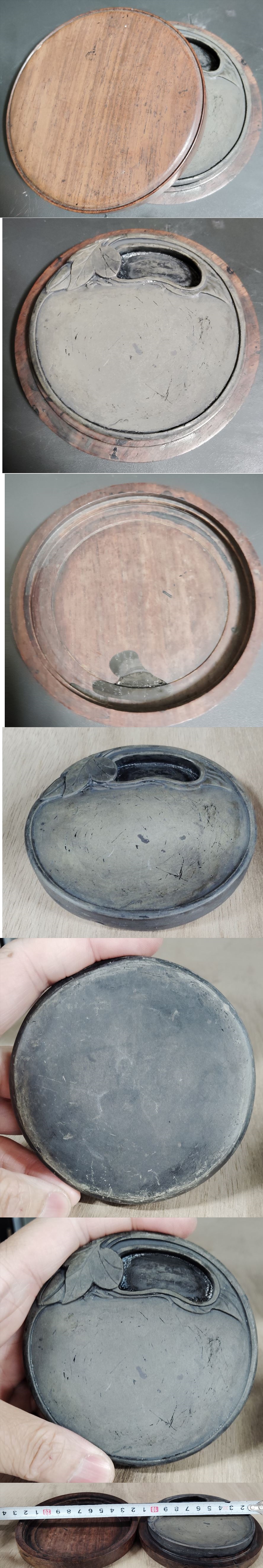 中国美術 中国硯 端渓 瓜紋 硯 唐木 花梨 箱付 検:端渓硯 老坑 金線 古硯 文房四宝 書道具
