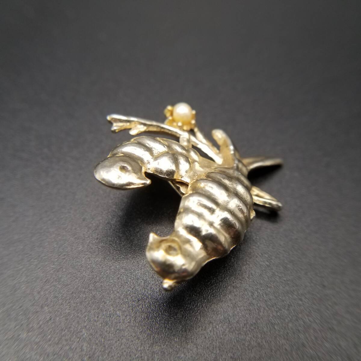木にとまる2羽の鳥 パール装飾 ヴィンテージ ブローチ ゴールドトーン 小ぶり レトロキュート 動物 鳥モチーフ 自然 Y16-Y