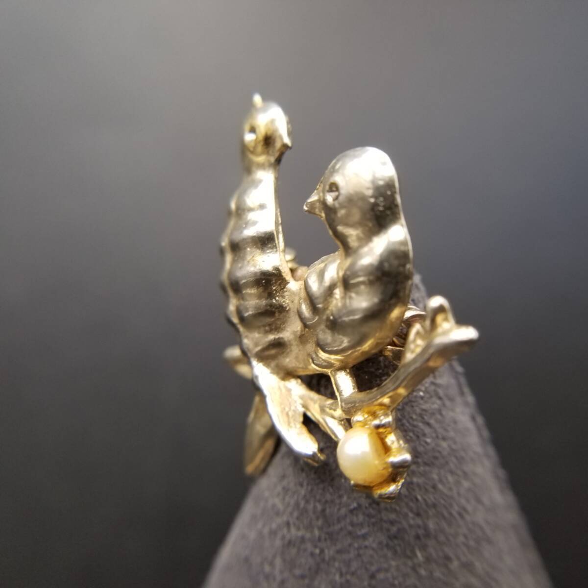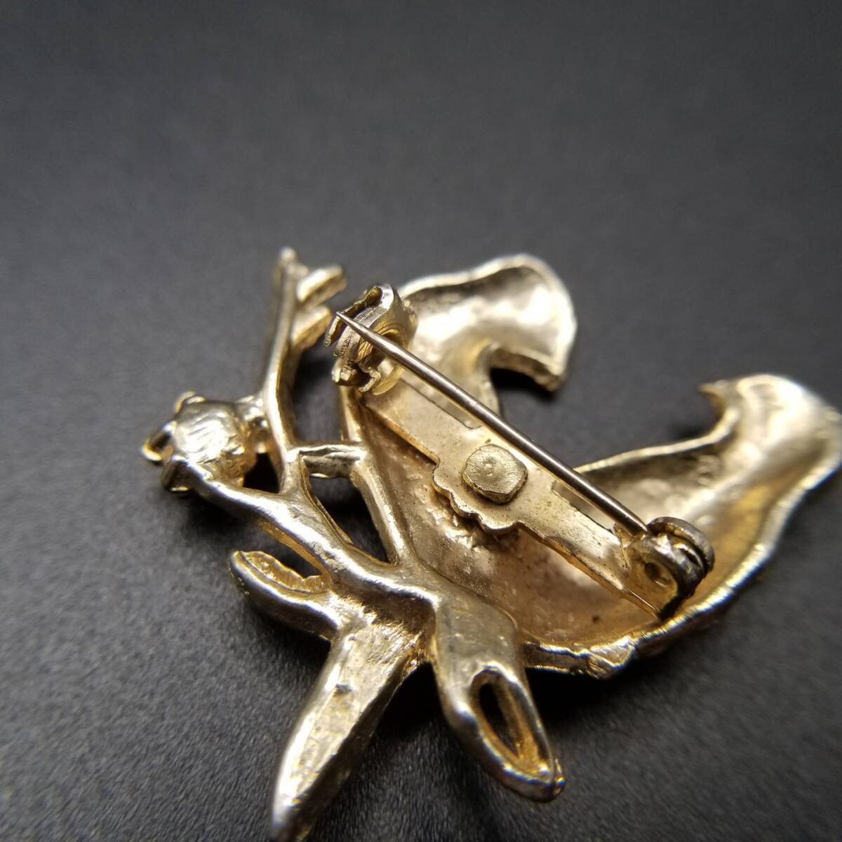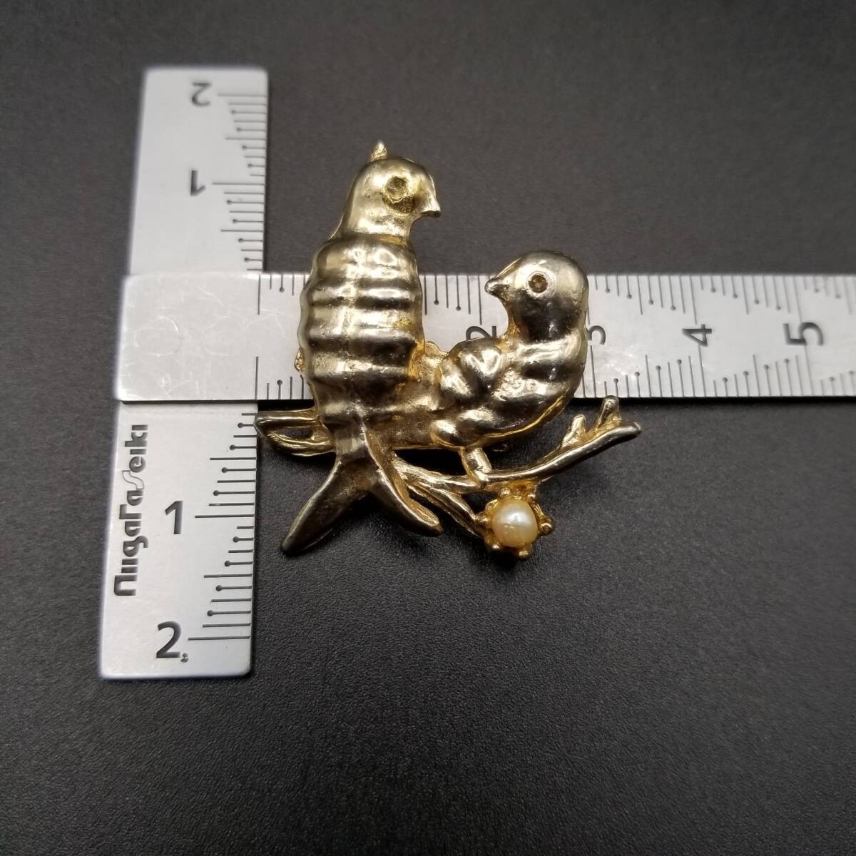 木にとまる2羽の鳥 パール装飾 ヴィンテージ ブローチ ゴールドトーン 小ぶり レトロキュート 動物 鳥モチーフ 自然 Y16-Y