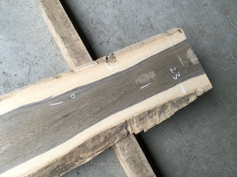 ■小節、干割れ、虫穴などある場合は、チョークでマークしていますが