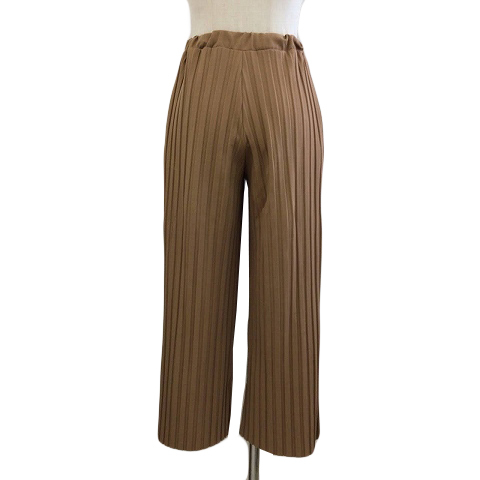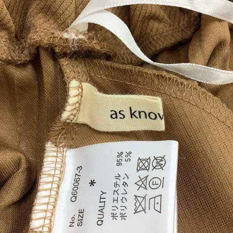 アズノウアズ as know as パンツ ワイド ロング プリーツ ウエストゴム イージー スリット カットオフ 茶 ベージュ ブラウン レディース