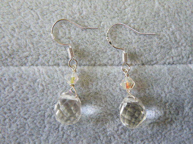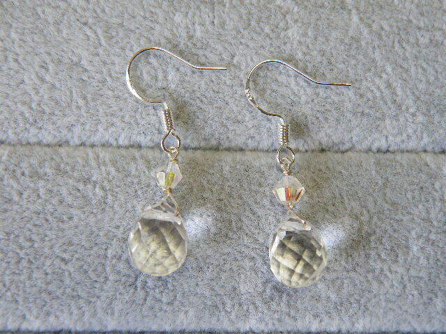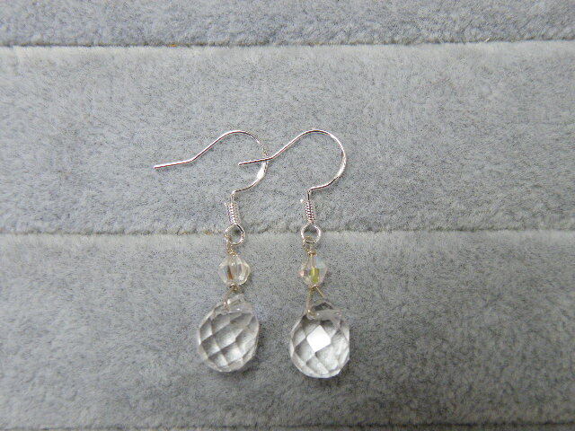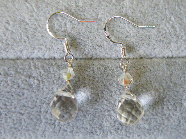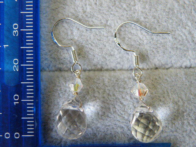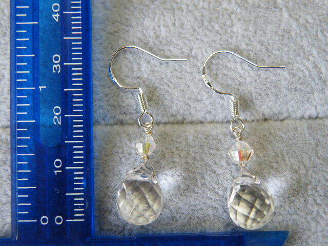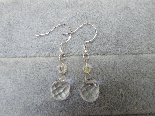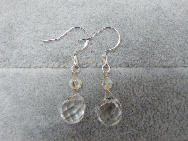 R00041.水晶 ティアドロップ シルバー925 ハンドメイド ロングピアス