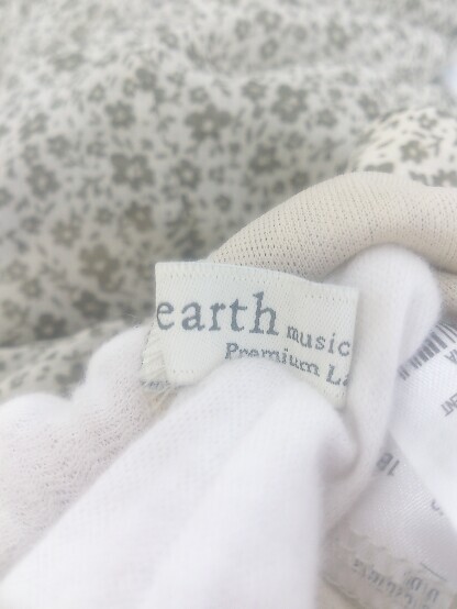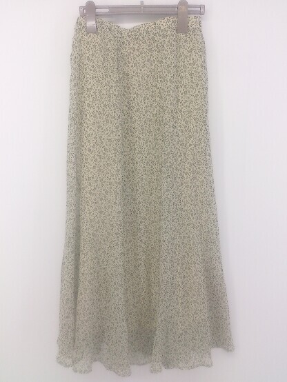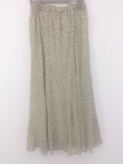 ◇ earth music&ecology 花柄 ウエストゴム ロング ギャザー スカート サイズF アイボリー モスグリーン系 レディース E