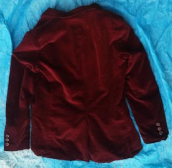 紫色のジャケット MG 女性用? です。フリマで購入、イタミ、ヨゴレ等あります。タグが切りとられていたので、サイズ等不明です。150~160cmくらいの方が着れそう?