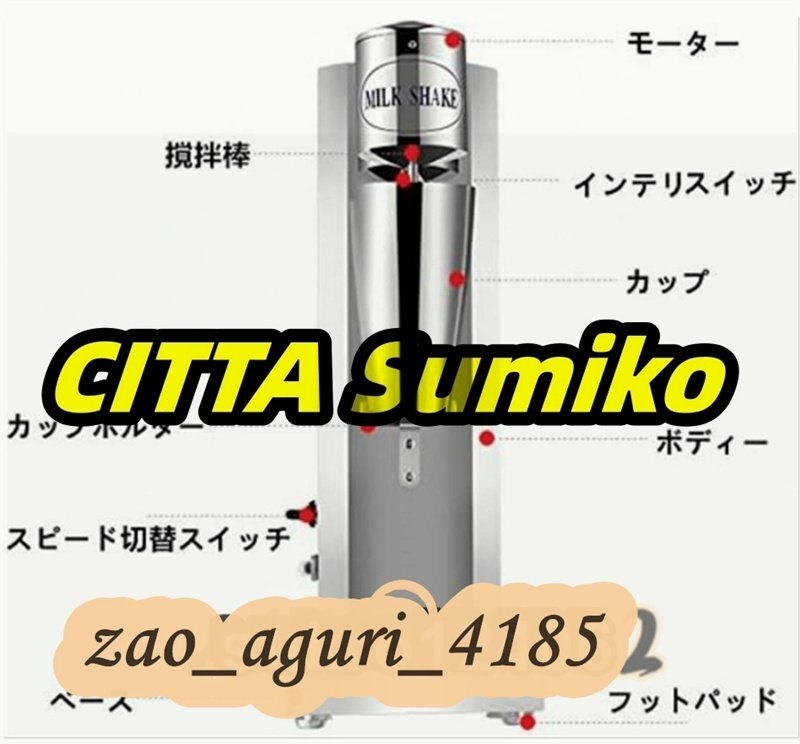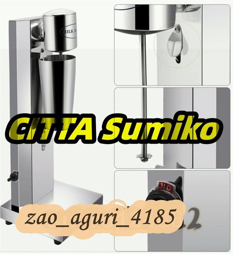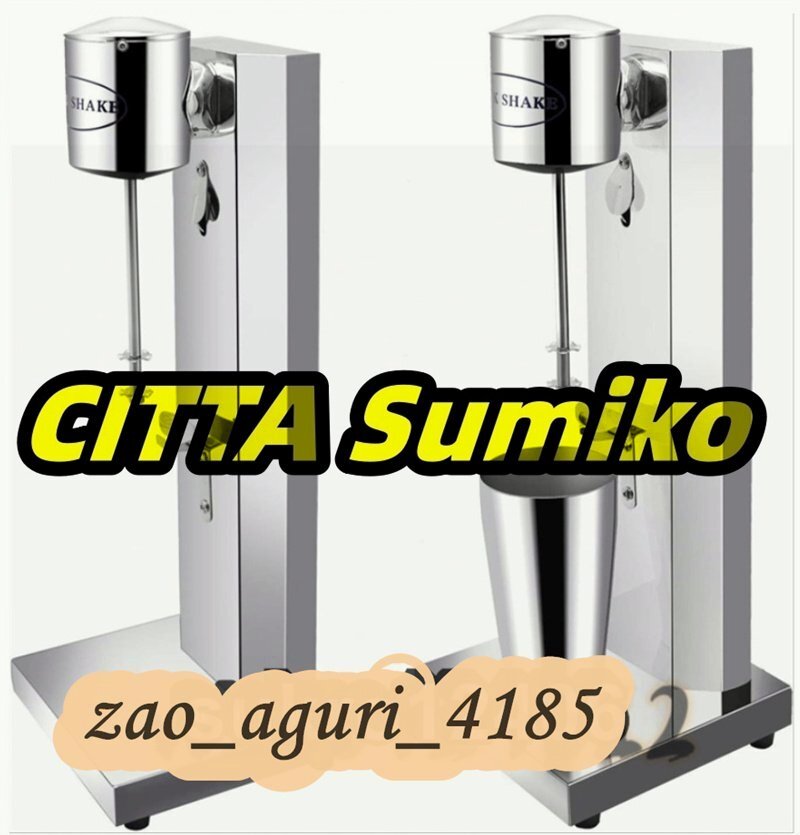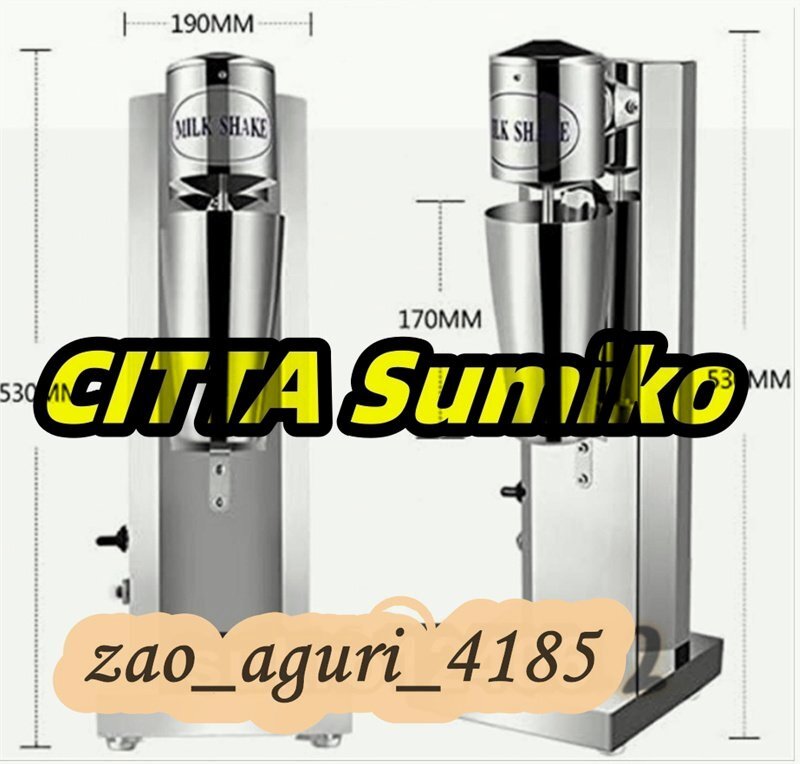 ★状態:新品未使用 ●お好みの素材をカップに入れてスイッチを押すだけ! お店で作ったようなおいしいシェイクの出来上がり! ●2段階のスピード切替機能、モーターは18000rpm回転、よく混ぜます。 シェイクだけでなく、スムージーや冷製スープなども楽しめます。 ●ステンレススチールの専門的な撹拌棒、より速い混合でき、耐久性あり、傷なし、錆びないです。 ●インテリジェントなセンサーデザインは、カップを取り付けることによって攪拌することができます。ヘルシーで栄養満点、そして食べやすい・飲みやすいお料理が手軽にできちゃいます。 ●野菜や果物がニガテなお子さまや、硬いものが食べられないお年寄りでもしっかり栄養が摂れます! シングルヘッドモデル: 本体寸法(約):180 × 180 × 530mm 本体重量(約):2.6kg パワー:180W カップ寸法(約):92 × 92 × 170mm カップ容量:800ml 実質回転数(毎分):18000rpm 材質:ステンレス ★ ダブルヘッド: 本体寸法(約):250 × 250 × 530mm 本体重量(約):4.5kg パワー:180W*2 カップ容量:800ml*2 ※ 650mlかくはんをお勧めします(こぼれない) ※ 推奨連続稼働時間:3分 ……………………………………………………… ★ 使い方: 機械は安全装置を採用し、電源を入れてまたミルクセーキカップが正しく取り付られると、機械は正常に動作できます。 ミルクセーキカップに飲料を入れます。ミルクセーキカップは、いっぱいになってはいけません。(最高目盛りは650mlですので、攪拌すると500mlを超えない方が良いです) ニーズに応じて適切な速度を選択してください。(低速または高速)