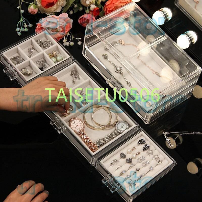 商品名:透明化粧オーガナイザー引き出しジュエリー収納ボックス防塵口紅 リングネックレスペンダント ホルダーディスプレイボックス 2