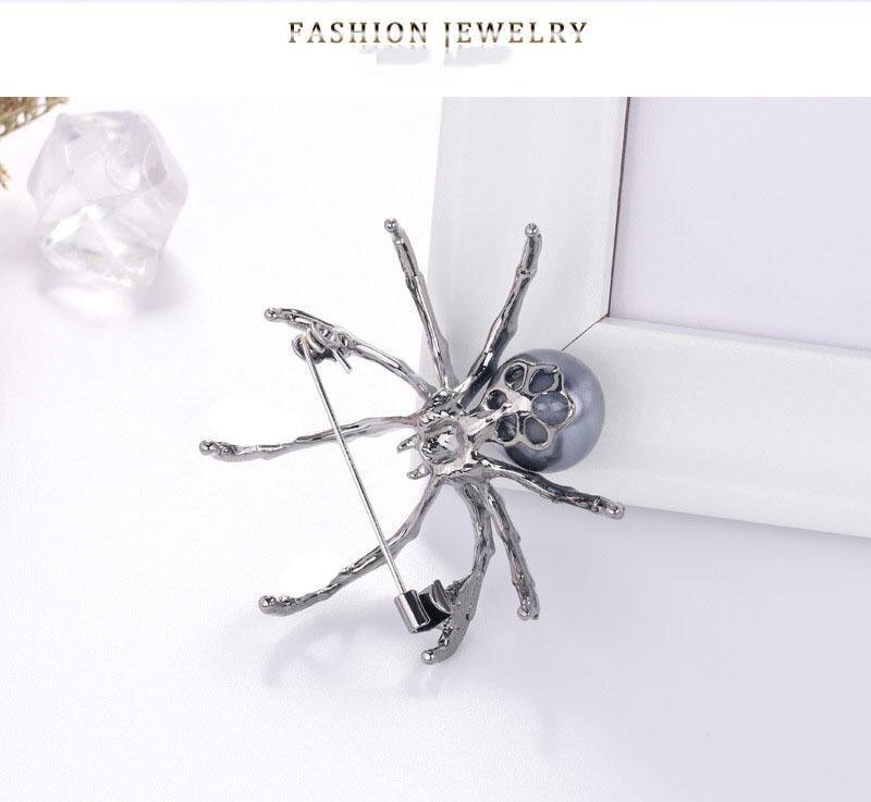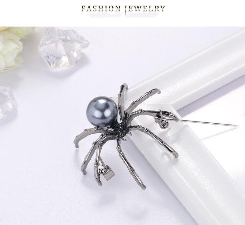 【動物】大粒 パール 蜘蛛 クモ ブローチ/グレー