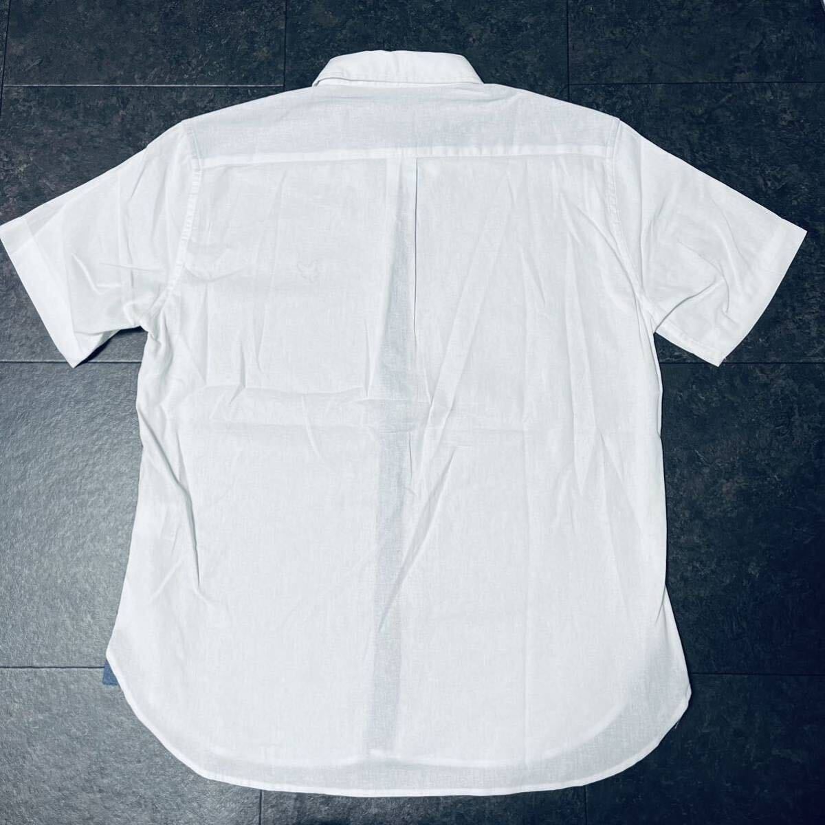 衿はボタンダウンカラー、背中はセンターボックスプリーツ、裾を出してラフに着用できるスッキリとした丈感。