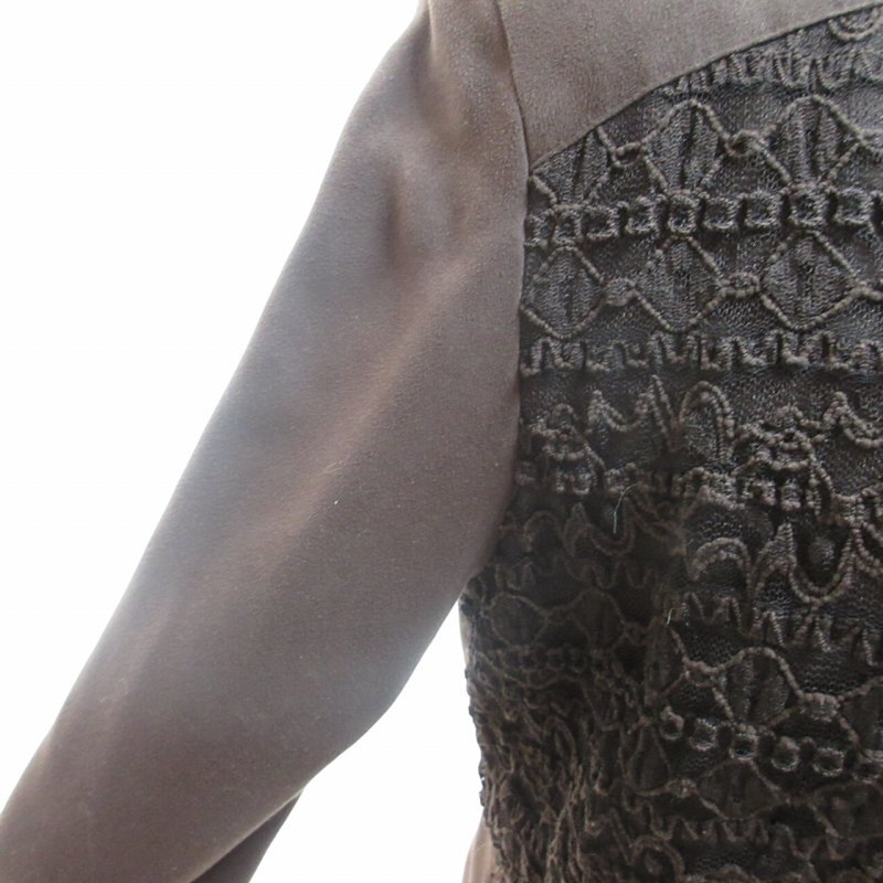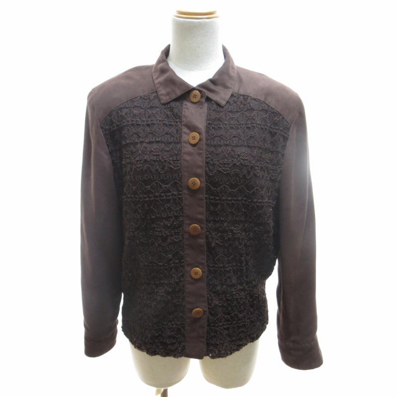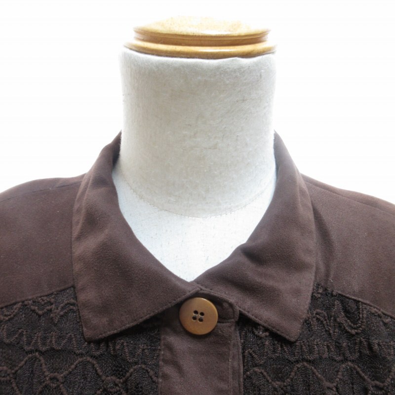 レリアン Leilian スエード シャツジャケット ブルゾン レース 6B 切替 総裏 茶 ブラウン 9 約Mサイズ ■KK5 0619 レディース