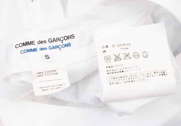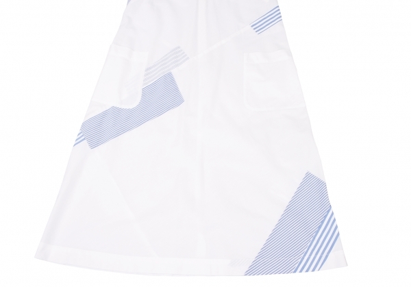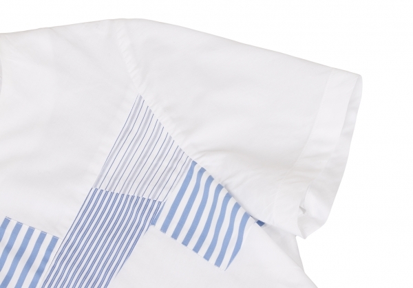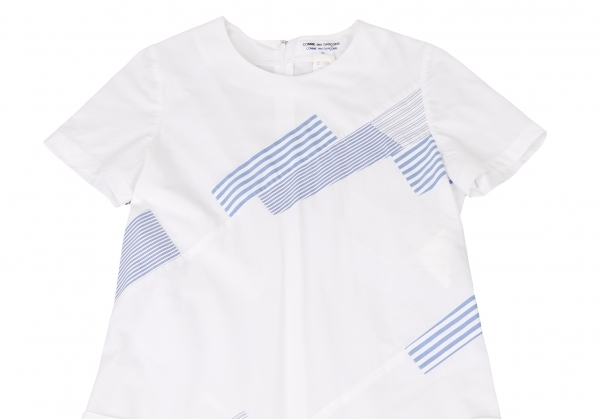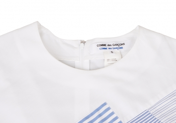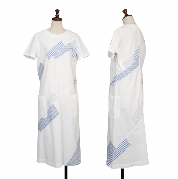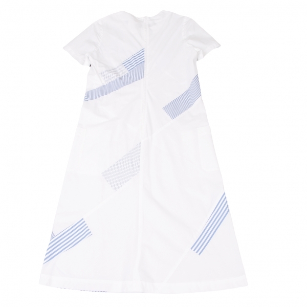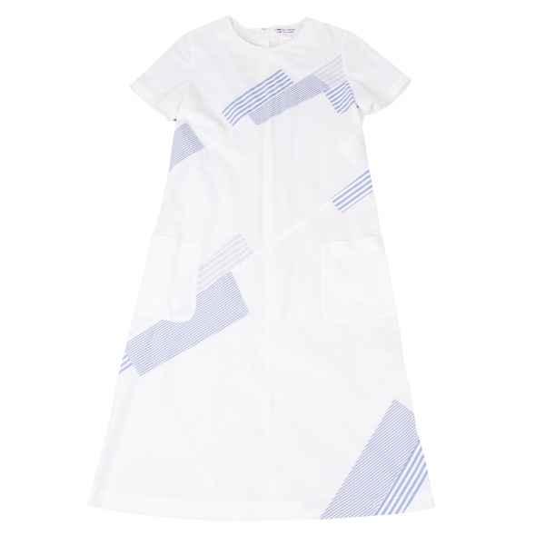 | コムコム コムデギャルソンCOMME des GARCONS コットンストライプパッチワーク半袖ワンピース 白青S |
