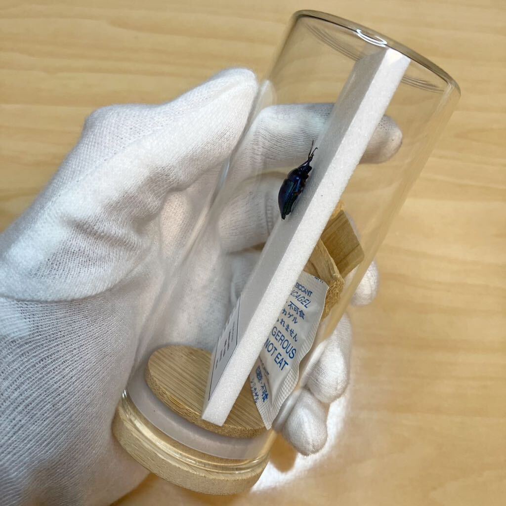 標本は薬品処理した後、十分乾燥させ防腐処理した物になります。 標本を台紙(ポリスチレンボード)にボンドで固定してあります。 台紙の裏面に防虫剤(ヒバチップ)と乾燥剤(シリカゲル)が入っておりケースの蓋をあけて交換することができます。