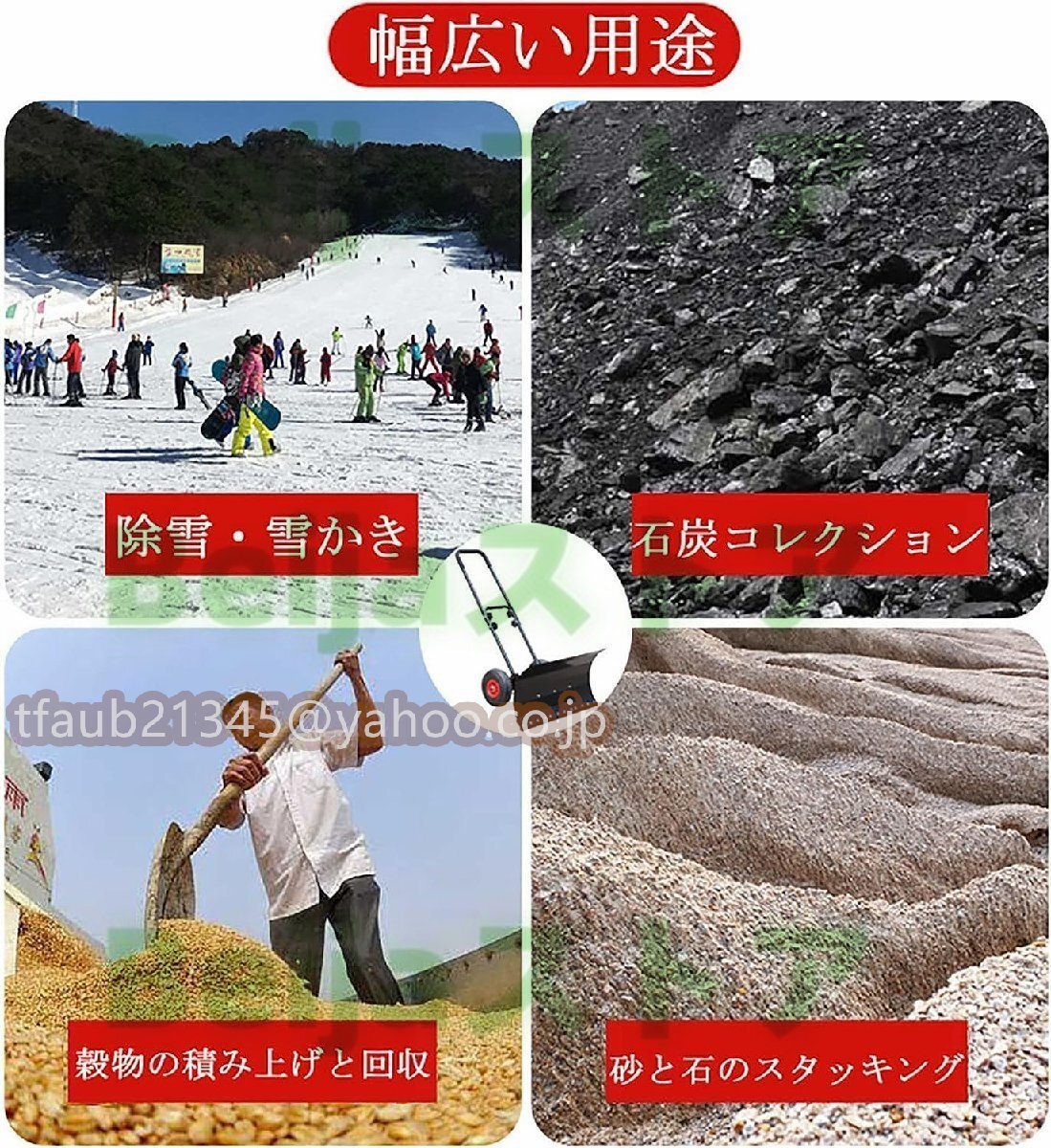 【雪かき機 タイヤ付き】:スノーショベルには、2つの大きな10インチのゴム製ホイールが含まれています。 空気圧タイヤは衝撃吸収効果があります。滑り止めの設計により、摩擦が発生し、雪かきの際の滑りを心配することなく、雪や寒い天候条件での押し込みが容易になります。私道を簡単に片付けます。